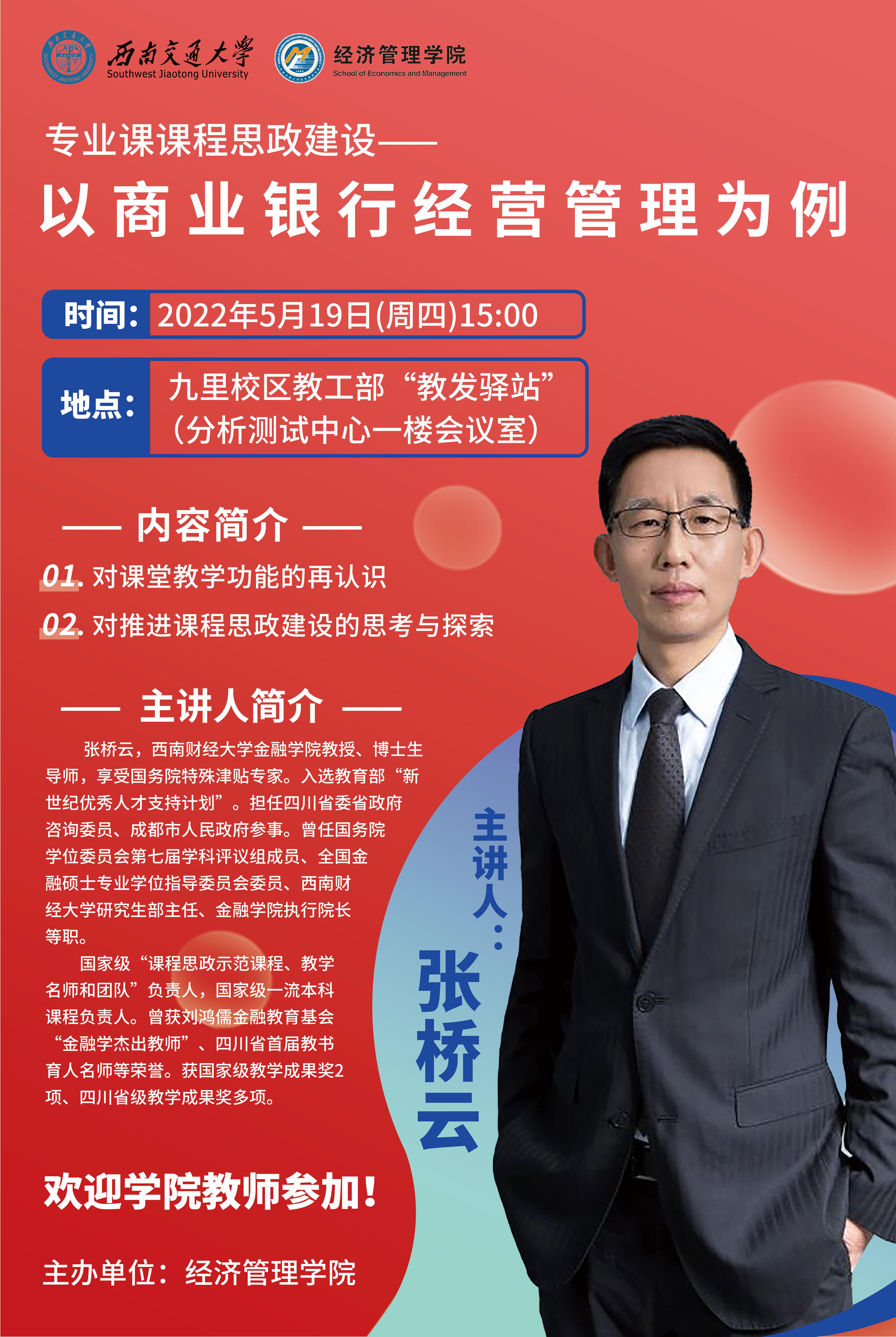 西南财经大学金融学院张桥云教授专业课课程思政建设讲座