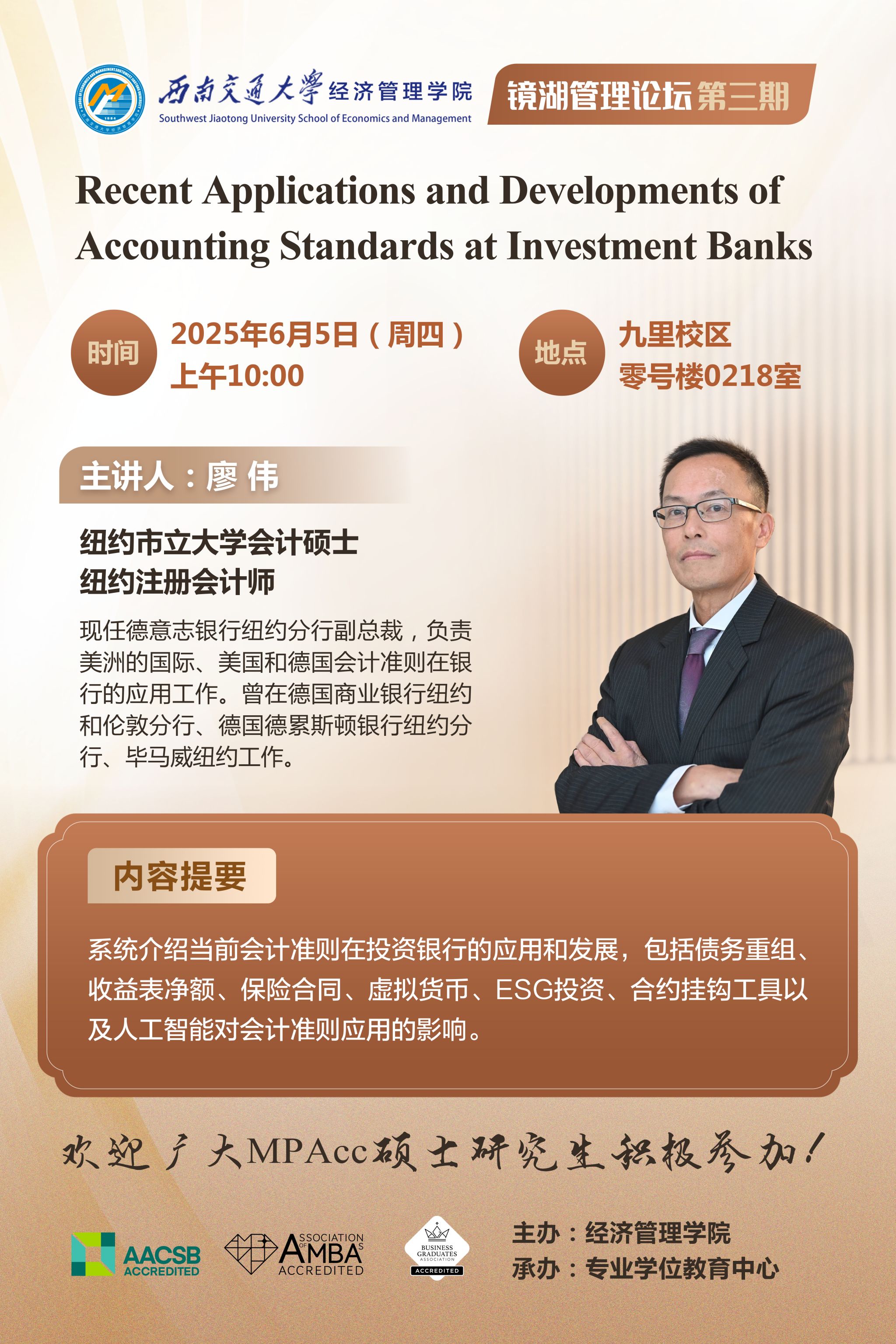镜湖管理论坛第三期:Recent Applications and Developments of Accounting Standards at Investment Banks