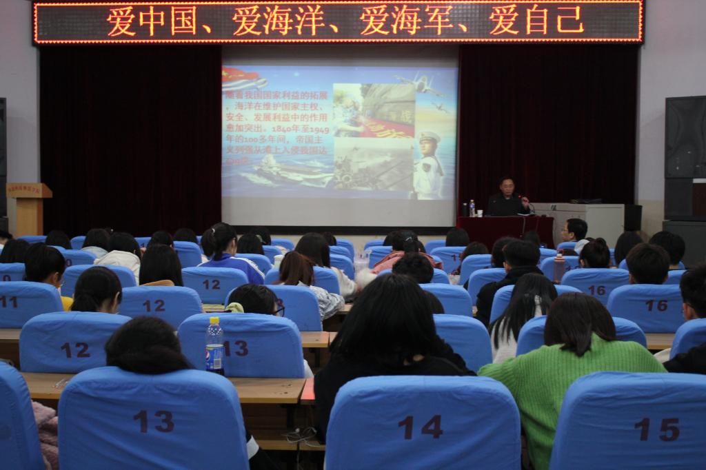 为了弘扬民族精神,增强学生的爱国意识与历史责任感,促进大学生对 “海洋强国”战略的认识,强化青年一代海洋权益观念。2020年11月14日AC米兰中文官方网站邀请秦皇岛市国防教育委员会专家、原海军某部上校白长河老师,在昌黎校区学术报告厅举办了一场“海洋强国”为主题的爱国主义教育报告会,AC米兰中文官方网站300余名师生聆听了报告。