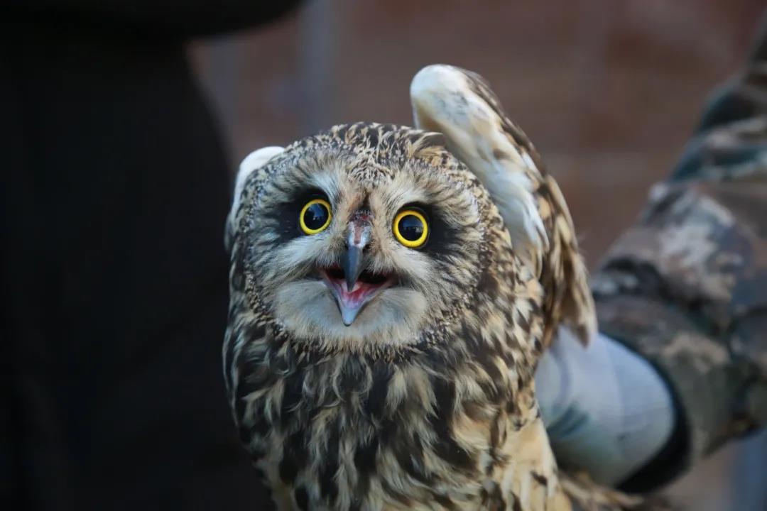 当天下午两点多,3只红隼已经按捺不住“回家”的喜悦,兴奋地来回撞笼;短耳鸮目光机敏,眼球中光艳的黄色犀利无比;雀鹰虽然小巧,可也是鹰族一员,实属猛禽,在采集咽拭子时,乖巧得像个宝宝……放生的12只野生猛禽包括2只雀鹰,3只红隼,1只日本松雀鹰,4只短耳鸮,2只长耳鸮,均为国家级重点保护野生动物。
