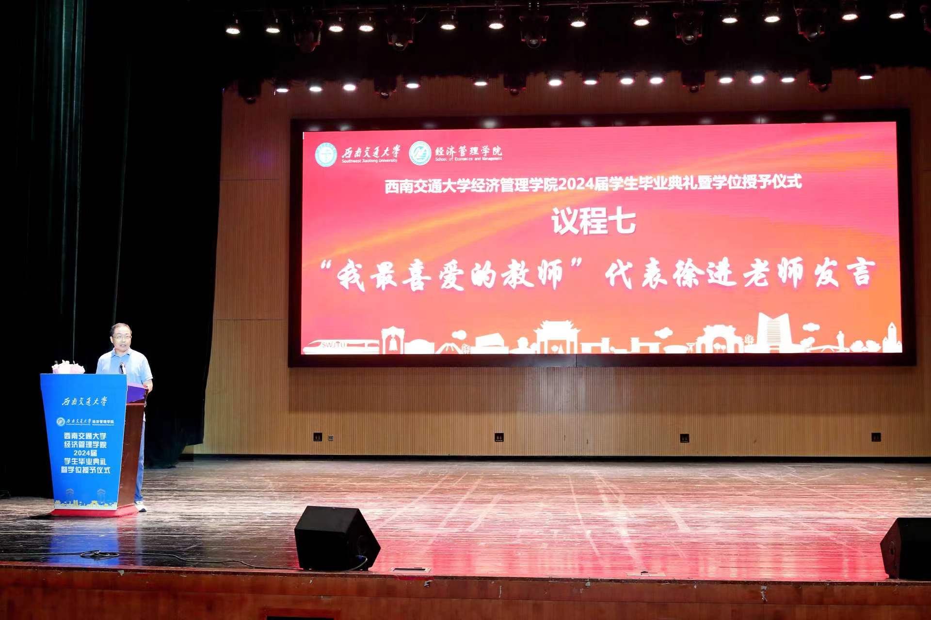 徐进老师作为全院教师代表,为2024届毕业生致临别寄语。他以大数据和人工智能为生动比喻,为毕业生们提出建议,他指出要在人生“大数据”中寻找价值,用大数据思维从生活点滴中汲取信息,明确人生方向,且要有广阔视野和包容心态,持续学习、自我优化。
