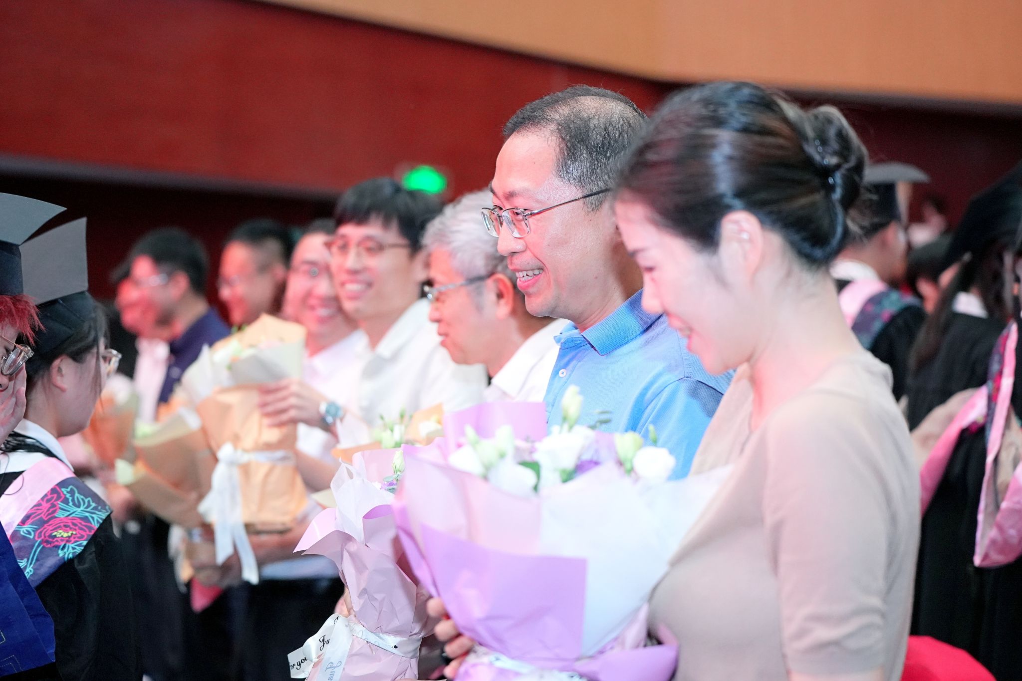 快闪环节后,学位授予仪式正式开始,学院学位分委会成员为全体毕业生拨穗授位。