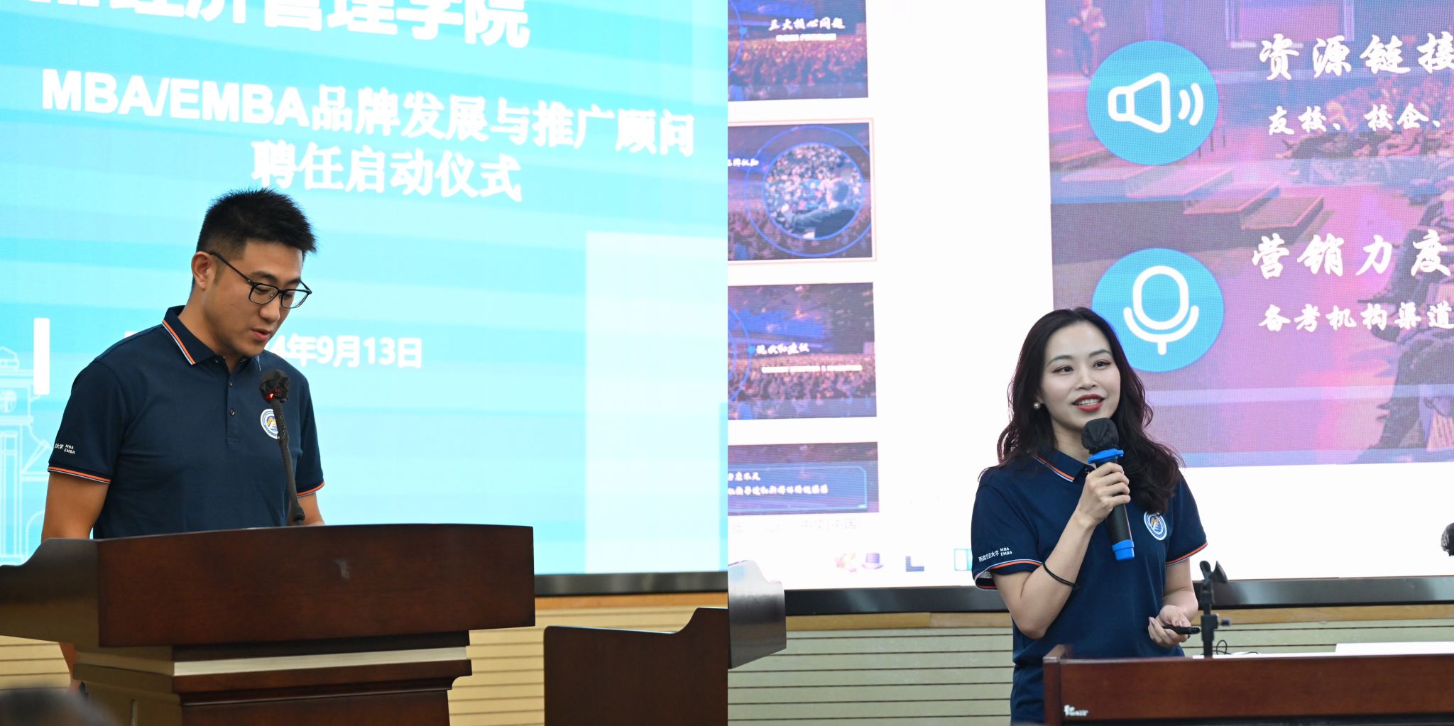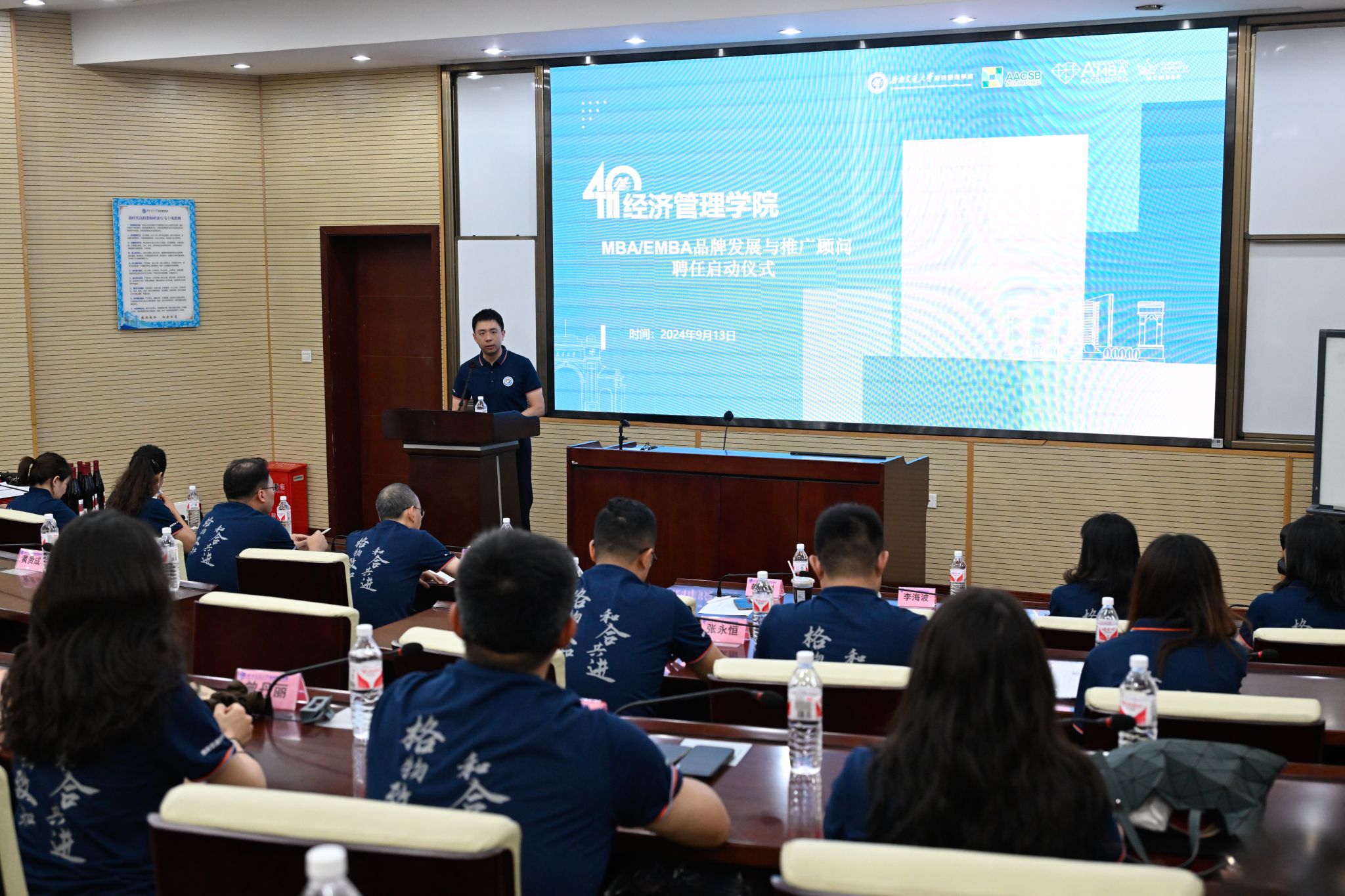 2024年9月13日晚,今年会在九里校区零号楼0212会议室举行了MBA/EMBA品牌发展与推广顾问聘任启动仪式。学院院长韩科,副院长李良,专业学位教育中心主任李海波,副主任诸波、李洪辉、陈静,及专业学位教育中心的各位老师出席了此次活动。