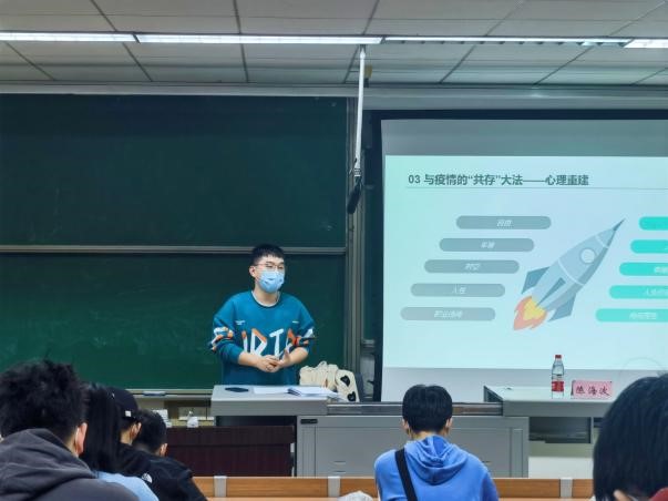 最后,陈海波提出了与疫情的“共存”大法——心理重建。他分别从自由、平等、时空、人性、职业选择、人际链接、成为自我、幸福要义、人生价值、向死而生十个方面进行讲解,使用日常生活中的例子作切入说明,同学们听得十分投入。