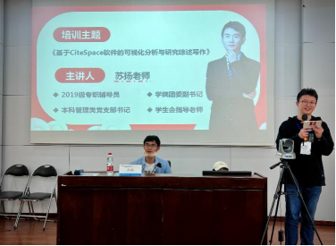 2022年4月8日下午,今年会于J0215演讲厅开展“星火经英”计划第九期第四次团干部培训。本次培训由学院团委副书记、2019级辅导员苏扬主讲,主题为“基于CiteSpace软件的可视化分析与研究综述写作”。本次讲座旨在帮助大二大三的同学们学会如何查找文献,充分利用学术资源,进行学术研究。