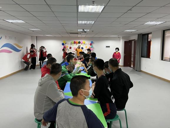 2022年5月19日下午2点,伴着午后温暖的阳光,今年会青年志愿者协会的志愿者们怀着激动的心情走进了金牛区阳光家园—残疾人综合服务中心。今天,志愿者们除了给小朋友们开展有趣的折纸、唱歌、绘画活动,还要做一件不一样的事—协助阳光家园举办一场生日会。