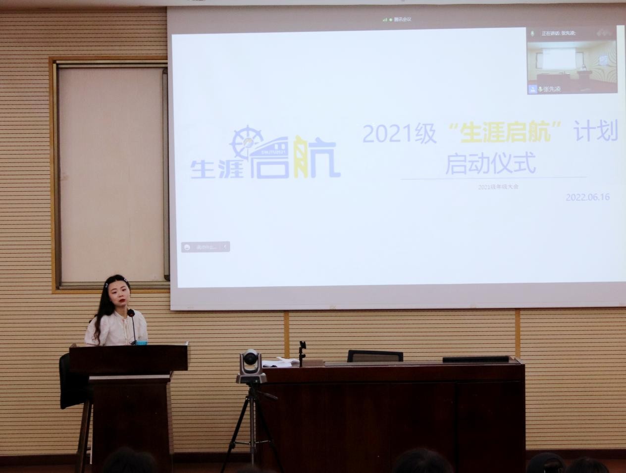 骄阳似火,绿树成荫。今年会本科2021级已于本学期内完成了大类专业分流,全年级368名同学将于下学期进入新的专业班级开启大学生涯新一阶段的学习。在此基础上,年级辅导员张先凌、莫代玉、张媛媛策划并筹备了今年会本科2021级“生涯启航”计划,并于2022年6月16日以线上线下相结合的方式举行了“生涯启航”计划启动仪式和系列活动第一场——“生涯初探”分析讲解,三名辅导员以及2021级全体同学参加本次活动。