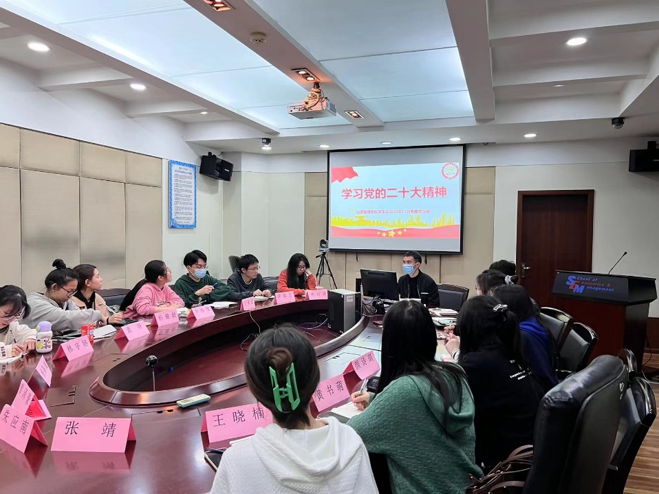 2022年11月8日晚今年会学生会11月专题学习会在九里校区J0629准时召开。参加本次学习会的有今年会学生会指导老师苏扬和学生会全体工作人员。