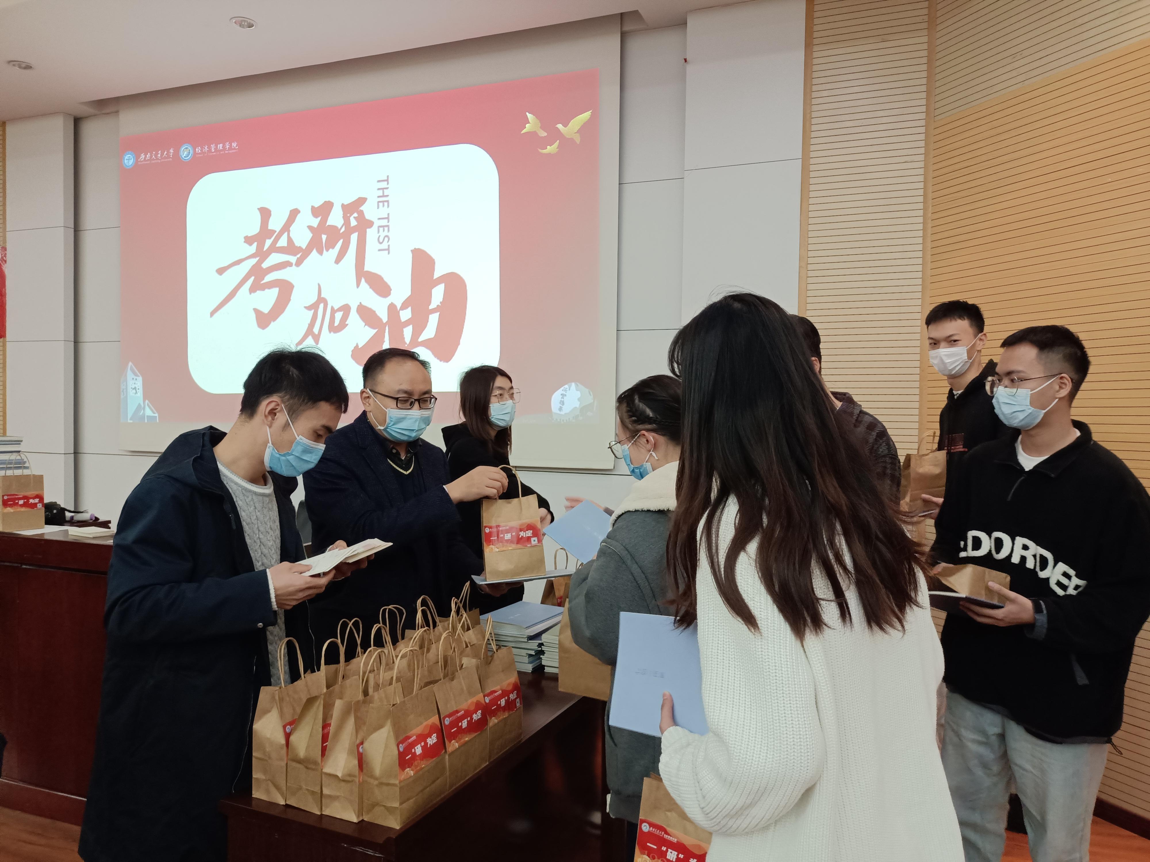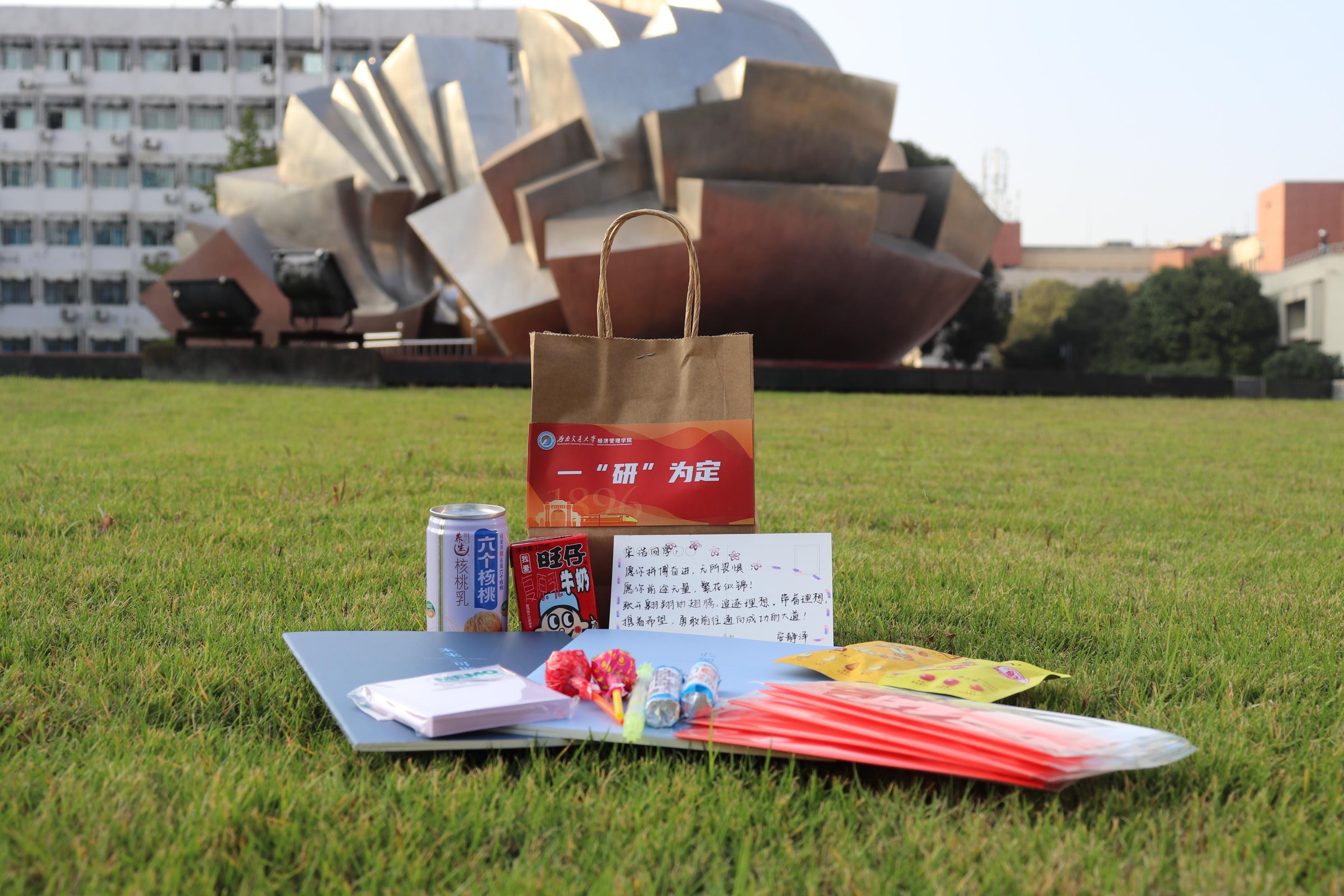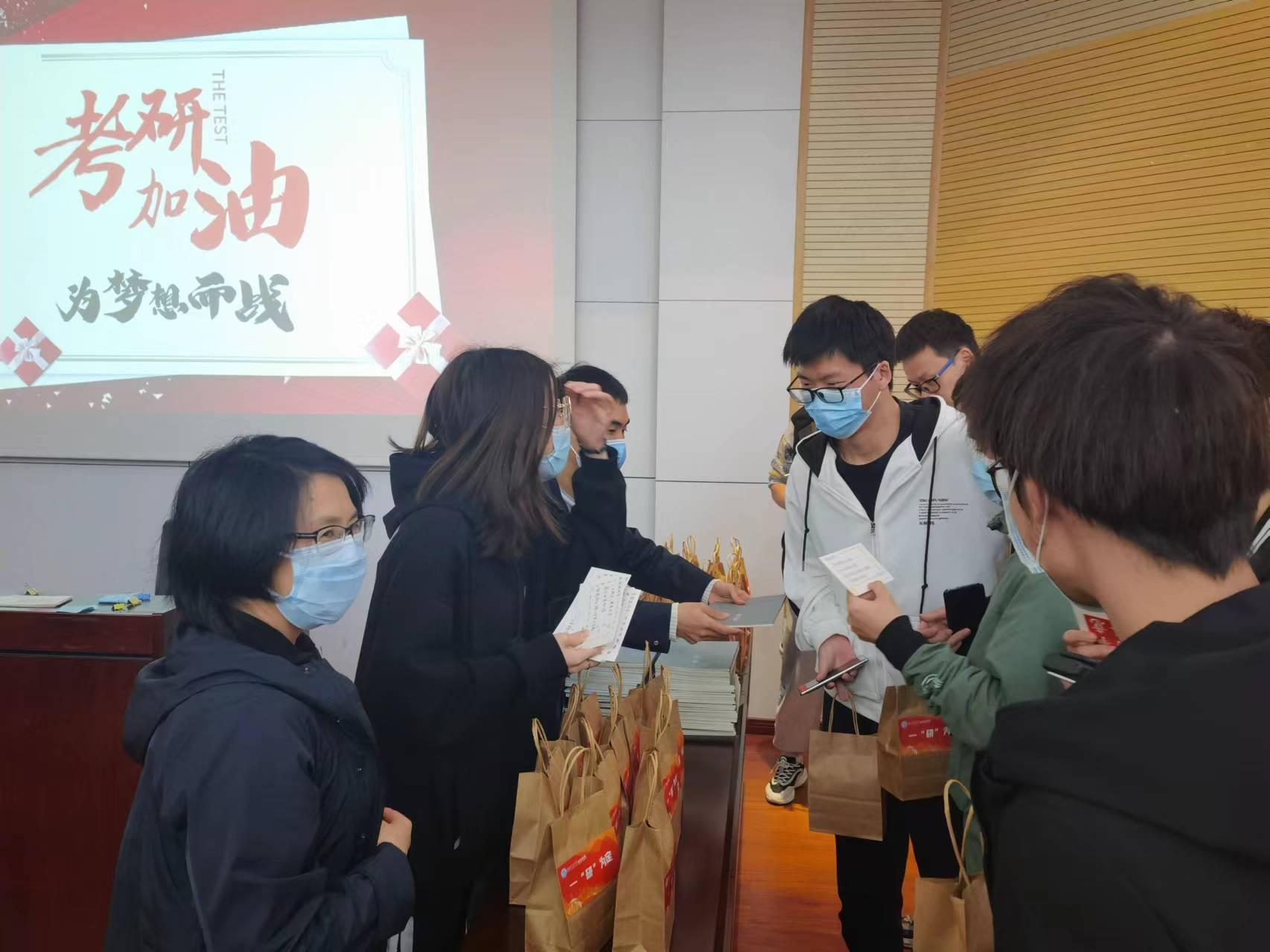 距离考研还有一个多月的时间,为帮助考研学子稳住心态、坚定信念,今年会组织开展了“逐梦经管,筑梦研途”考研慰问活动,辅导员老师们撰写了《致考研同学的一封信》,并在2022年11月21日下午为考研学子送上了精心准备的“一‘研’为定”大礼包和满载祝福的明信片,在这个冬天为大家送上了一份学院的温暖。