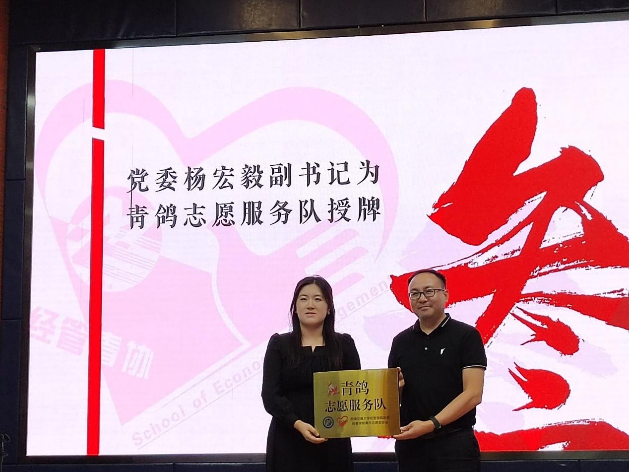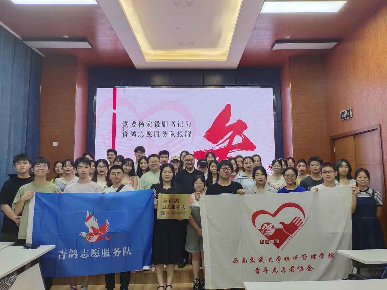 活动最后 ,杨宏毅副书记为青鸽志愿服务队授牌,授牌仪式结束后,大家合影留念,为志愿服务再添新光。