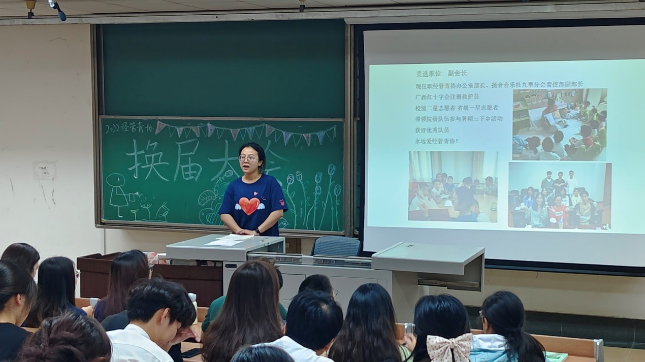 接下来,经管青协迎来了本学年的组织内部换届大会。本次大会是一次承前启后、继往开来的大会,是站在新起点上的大会。