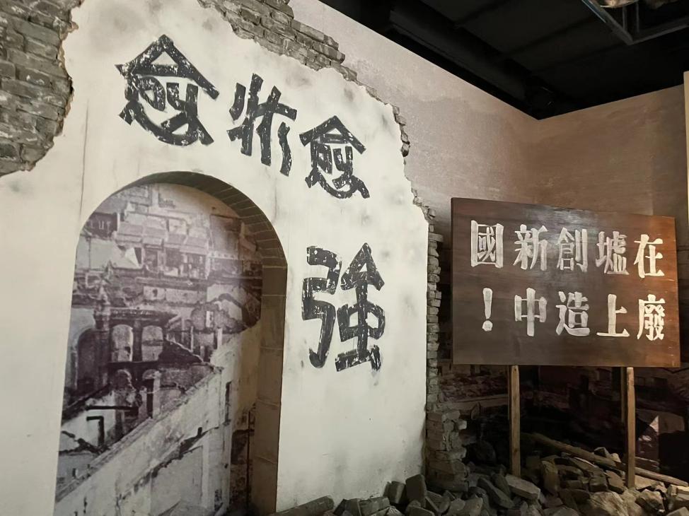 这是当初灾难后遗址的复原,偌大的字体透过时空,仍然显得无比有力,团队成员都被这一景象深深震撼。即使只剩残垣断壁,即使狼藉遍地,伟大的中国人民仍怀有“让暴风雨来得更猛烈些吧”的英勇无畏和在一片废墟之上重建美好家园的坚定决心。这一场景无疑是红岩精神中最为悲壮的一幕。