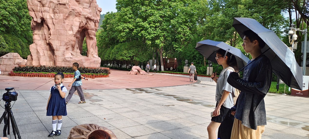 7月11日实践团队实地探访了烈士纪念碑、红岩魂陈列馆等红色文化学习基地,与提前联系的红岩志愿服务中心的工作人员进行了会面,同时观看了“小小红色讲解员”的讲解。
