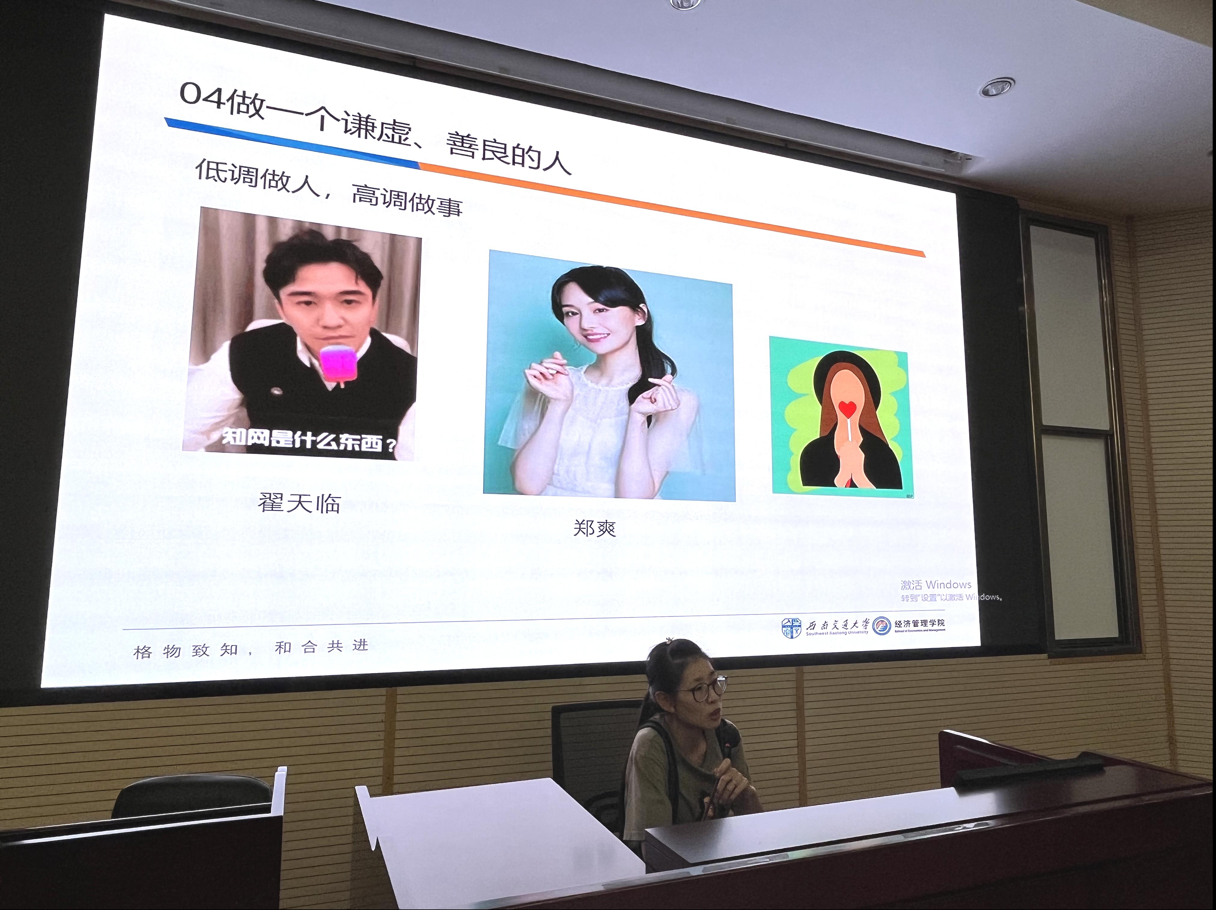 然后,贾佳老师从6个方面,结合名人经历和新闻热点,生动有趣的为新生们讲解了应该如何开始一段有趣又有意义的研究生生活,为大家打开了一扇新的大门。这种同学们与老师零距离的交流也使同学们获益匪浅。