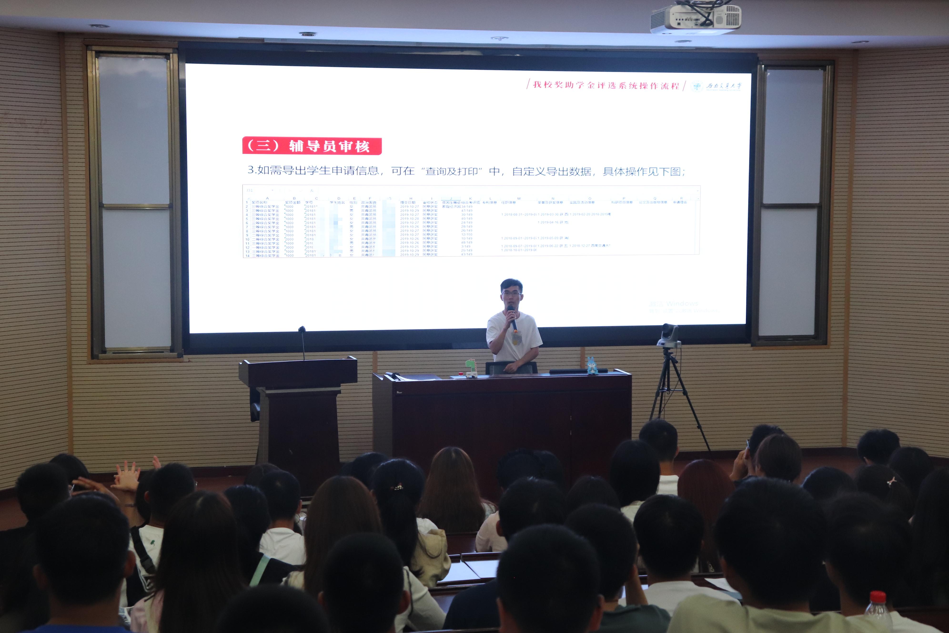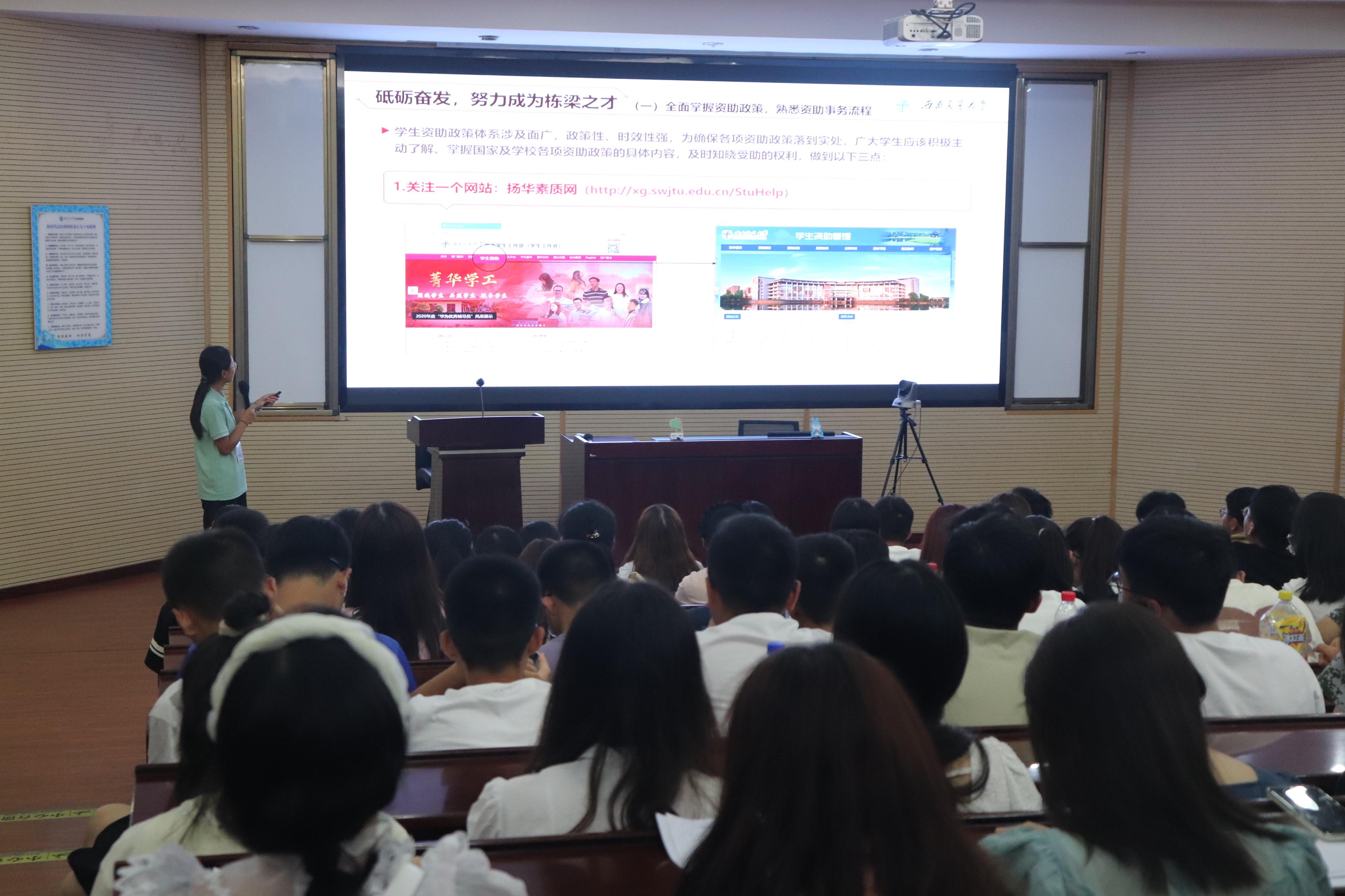 2023年9月9日晚,今年会本科2023级全体新生分别在J0202、J0215参加入学教育系列讲座之资助政策宣讲活动。学生工作组副组长王哿、辅导员苏扬和学校小资小助宣讲团成员为同学们详细讲解了有关学生资助体系、国家助学贷款、本科生各类奖助学金评选、家庭经济困难学生认定等知识。