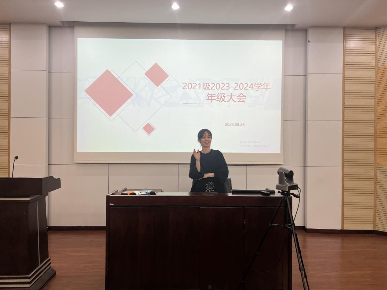 为了在大三学年伊始引导学生树立正确的学业、职业生涯目标,2023年9月26日19:00,今年会本科2021级在九里校区J0215教室举行年级大会。本次大会采取“线上+线下”相结合的方式举行,由本科2021级辅导员张先凌、钟文婷主持,2021级全体学生参加。