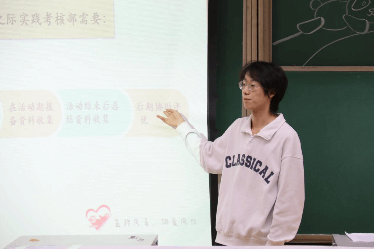 在才艺表演的间隙,大会还为新干事介绍了许多青协相关内容,例如外联部宣讲了特色专项服务:聚焦儿童群体的交大幼儿园、关注老年群体的敬老院、关注社会残障人士的阳光家园、关注自闭症儿童的善工家园,以四个志愿者基地为基础,青协的志愿服务走向社会,让全社会看到当代大学生的爱心和奉献精神;活动部讲解了志愿四川操作流程,包括注册账号、加入组织、参与活动的方式,解读星级志愿者评定细则,详细介绍了成为不同等级的星级志愿者需要的服务时长和申请流程,并鼓励大家积极参加志愿活动,努力成为一名星级志愿者;实践考核部则讲解了寒暑假社会实践活动和交通公益内容:寒暑假社会实践活动在学校发布通知后,由实践考核部收集报备资料和总结材料,并协助评优,在截止日期前制定计划并上交,等待立项通知。交通公益在原有实践项目赛道的基础上,加入了创意项目赛道和文化产品设计作品赛道,增加了作品形式,让更多队伍有机会进入省级志愿服务大赛继续展示自己。此外,在经验分享中,各部门建议新干事要提前制定详细计划,联系当地部门或机构尽可能获得支持,实施过程中要与当地居民进行良好沟通,确保活动顺利进行。青年志愿者是一个响亮的名字,青年志愿者行动是一项崇高的事业,青年志愿者精神,是一代青年的精神追求。通过这些专业讲解和实践分享,增强了大家对志愿服务的理解,激发了大家参与志愿活动的热情,将爱心和责任传递给更多的人。