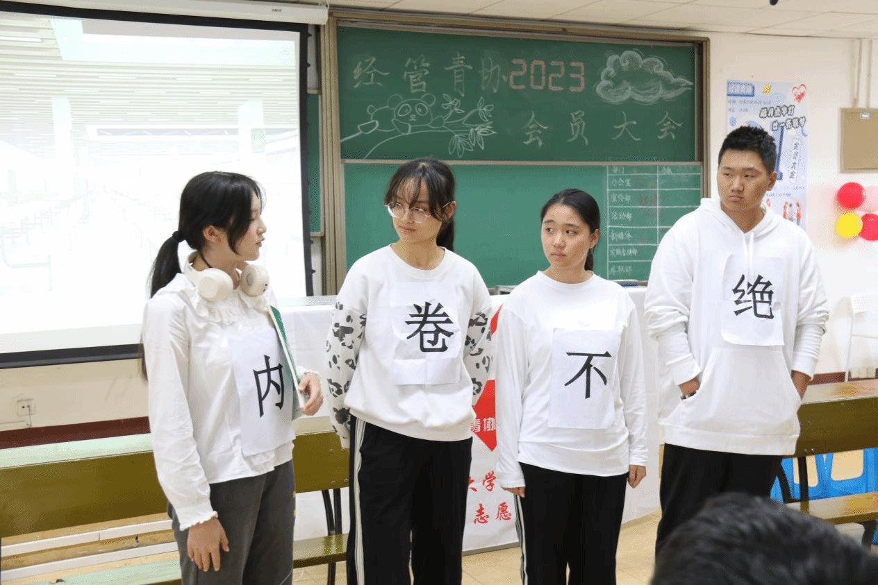 在大会中,青协六大部门依次展示了精彩的才艺,办公室的反内卷小品《内卷不绝》、宣传部友谊小剧场《辞职风波》、活动部令人捧腹大笑的小品舞蹈《青协职业技术学院》、新媒体表演拒绝拖延主题的小品《谁杀死了周日》、实践考核部识诈反诈宣传片《天下无骗》、外联部模仿得惟妙惟肖的宫斗剧《滴血认亲》,无一不展示了自己的才华和团队合作的精神,欢声笑语不仅让人感受到青协大家庭融洽温暖的氛围,也加强了青协内部的凝聚力。