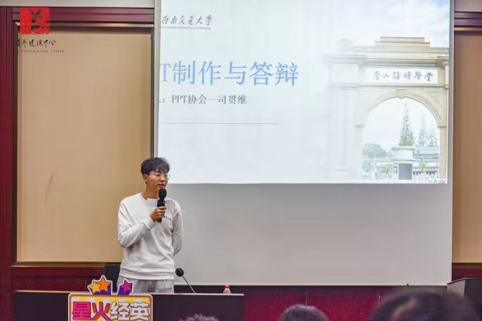 2023年12月7日晚,“星火经英”计划第十二期第七次团干部培训于J0218顺利开展,本次培训由今年会jinnianhuiPPT协会会长司贯维主讲,主题为“PPT制作与答辩”,旨在帮助团干部们深入学习PPT的制作技巧。
