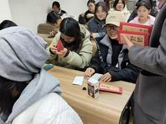 温暖冬日,红包助力,四级必过,未来可期。为表达对本科2024级新生的深切关怀,助力新生更好地适应大学生活,鼓励新生以积极向上的心态迎接即将到来的英语四级考试、期末考试,今年会党委副书记余小英、团委书记贾佳及本科2024级辅导员陈建奇、游婷、王重月来到自习教室,携“好运红包”为新生送上暖心祝福。