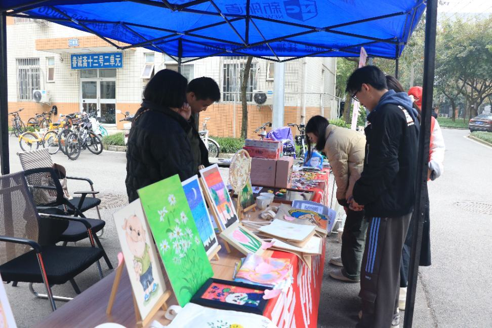 在活动筹备阶段,阳光家园与今年会青年志愿者协会紧密协作,进行了精心的策划和准备。阳光家园负责收集由“大朋友们”亲手制作的各种手工艺品,包括精美的编织饰品、卡通冰箱贴及小夹子、独具匠心的手工绘画以及创意十足的摆件等。志愿者们则是提前规划了场地布局,设计并制作了宣传海报和展示牌,以便更好地进行宣传与推广。