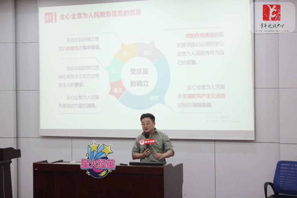 谈及党的根本宗旨,陈建奇老师回溯至 1945 年党的七大,阐释 “全心全意为人民服务” 写入党章的历史意义,并结合六点践行要求与实际案例,剖析宗旨的实践路径,让团干部和入团积极分子深刻理解宗旨的内涵与实践意义。