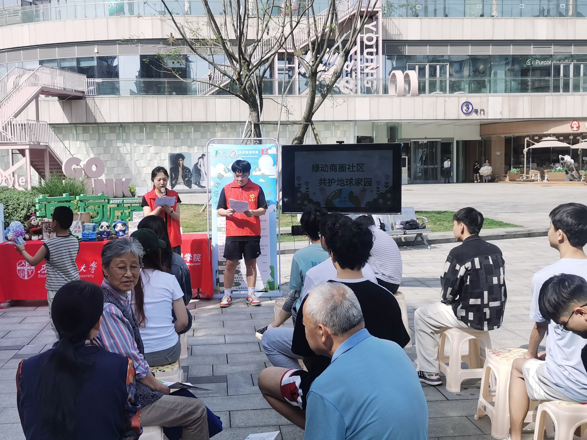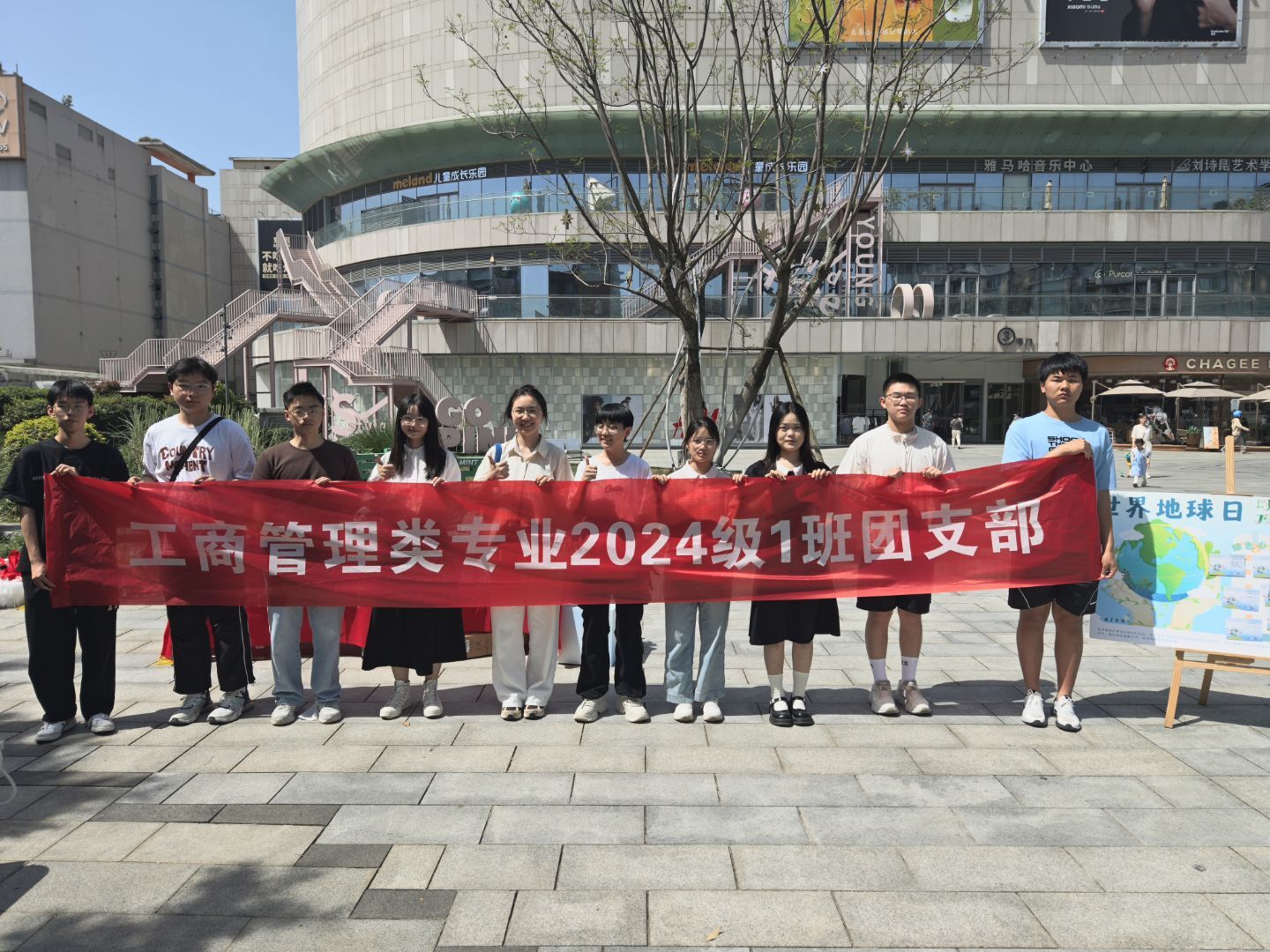 2025年4月22日是第55个“世界地球日”,为深入学习宣传贯彻习近平生态文明思想,引导社会公民牢固树立和践行绿水青山就是金山银山的理念、增强环境保护的意识,4 月 19 日上午,共青团今年会委员会、九里堤街道社区、凯德广场金牛共同开展了“绿动商圈社区,共护地球家园”主题活动。本次主题活动由工商管理类专业2024级1班团支部和经济与贸易类专业2023级1班团支部承办。