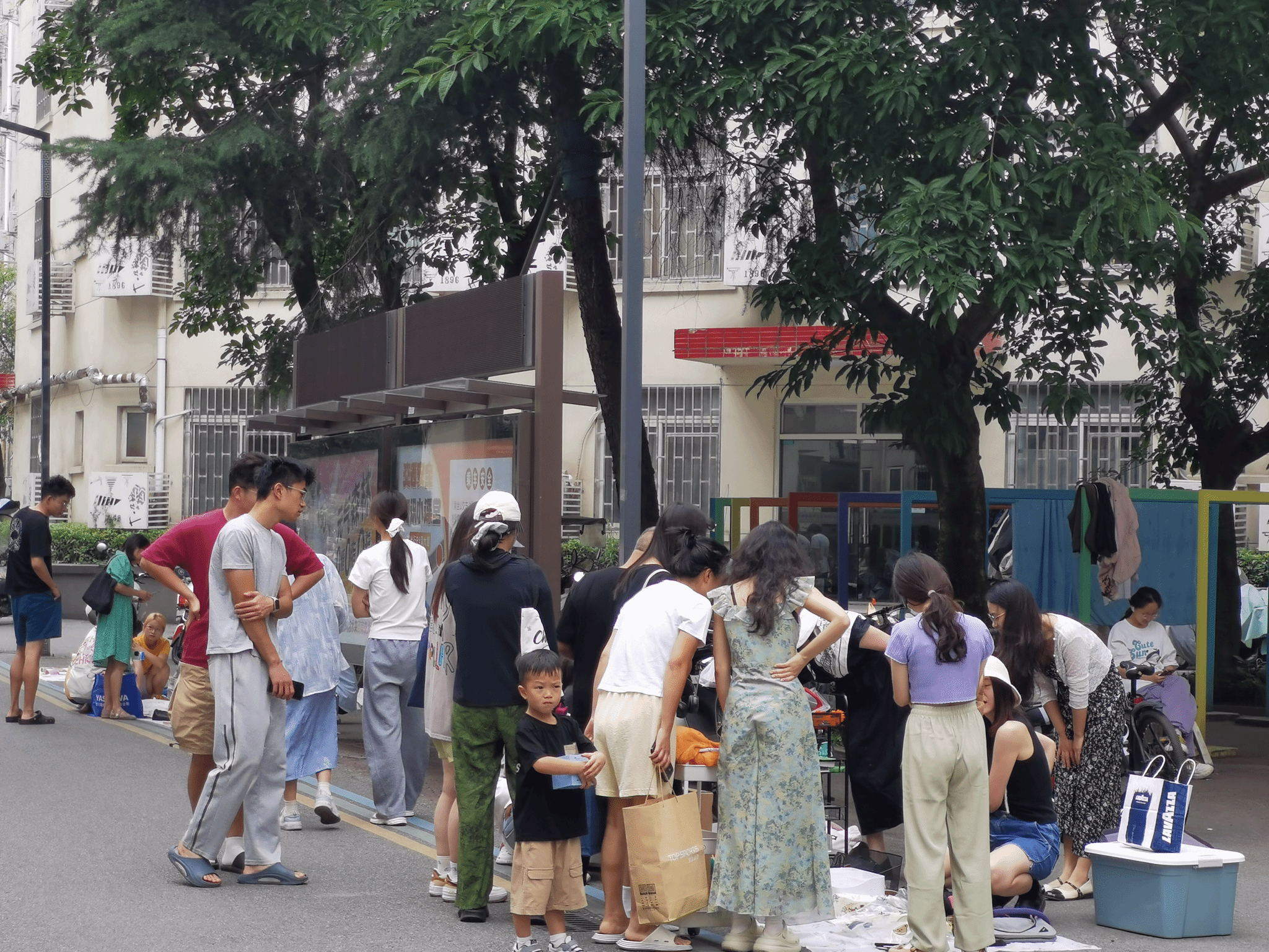 即将告别校园的学长学姐们纷纷化身“摊主”,将承载着知识与回忆的教材教辅、课外书籍、学习笔记,以及陪伴日常的生活用品整理上架,让一件件旧物在流动中延续价值。活动现场,摊位整齐排列,吆喝声、欢笑声交织成青春的乐章。熙熙攘攘的人群中,有人捧着教辅资料欣喜不已,有人与“摊主”笑谈生活故事,整个市场成为同学们沉浸式体验线下交易乐趣的温暖场域。