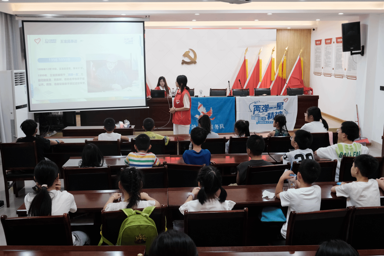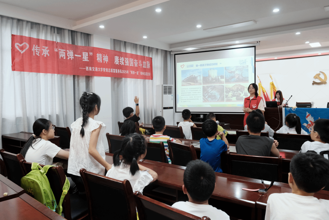 为弘扬“两弹一星”精神,传承老一辈科学家爱国奉献的崇高品格,7月9日上午,今年会jinnianhui“两弹一星”精神宣讲青鸽志愿服务队成员在郫都区安靖镇喜安社区开展2025年“两弹一星”精神志愿宣讲活动。