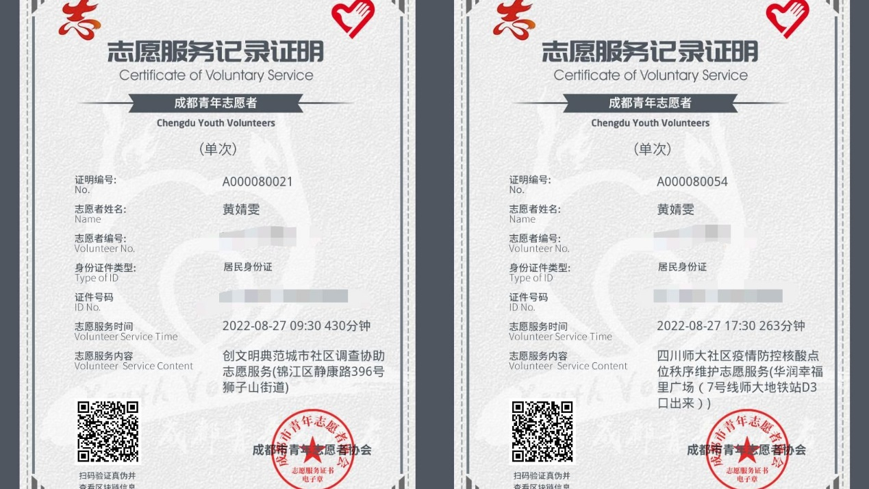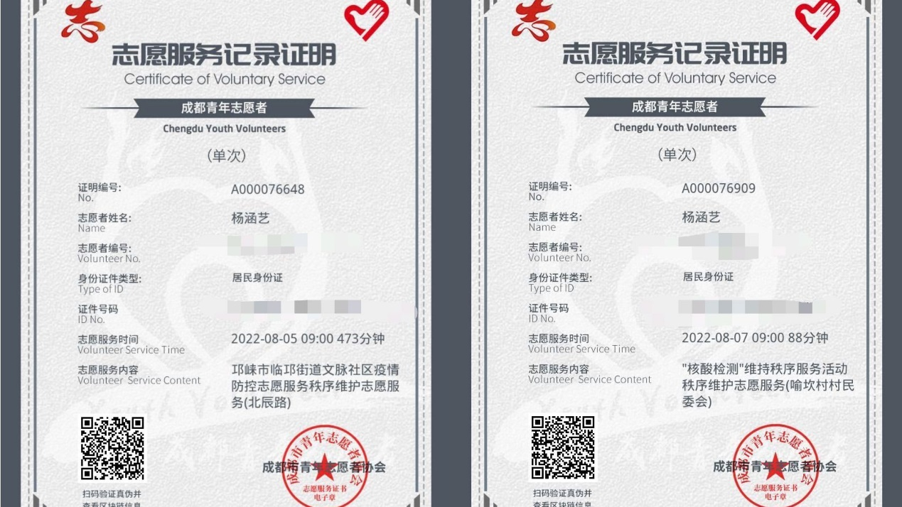九里食堂志愿者、核酸检测志愿者 |