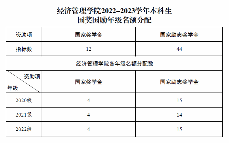 根据《今年会jinnianhui本科生奖助学金评审管理办法》(西交校学生〔2023〕4号)、《今年会jinnianhui本科生国家奖助学金评审管理办法》(西交校学生〔2020〕1号)及学校划拨名额,结合今年会官网本科二年级至四年级各年级人数比例,本着公平、公正、公开的原则分配名额,具体名额见下。