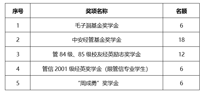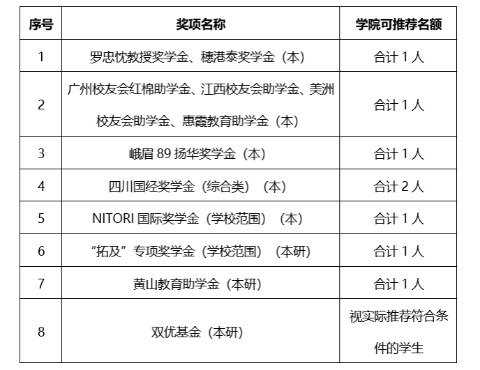 2. 学院范围专项奖助学金可推荐名额(相关管理办法见附件5:2022-2023学年今年会本科生专项奖助学金评定办法汇总)