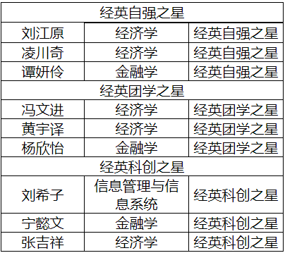 根据《今年会本科毕业生专项表彰评定暂行办法》及学院相关工作安排,经过学生本人申请、学生工作组审核、学院评审小组现场评审,本次评选称号包括经英自强之星、经英科创之星、经英团学之星,根据评选工作相关规定,现将今年会2023届本科毕业生专项表彰获得者进行公示。公示名单如下: