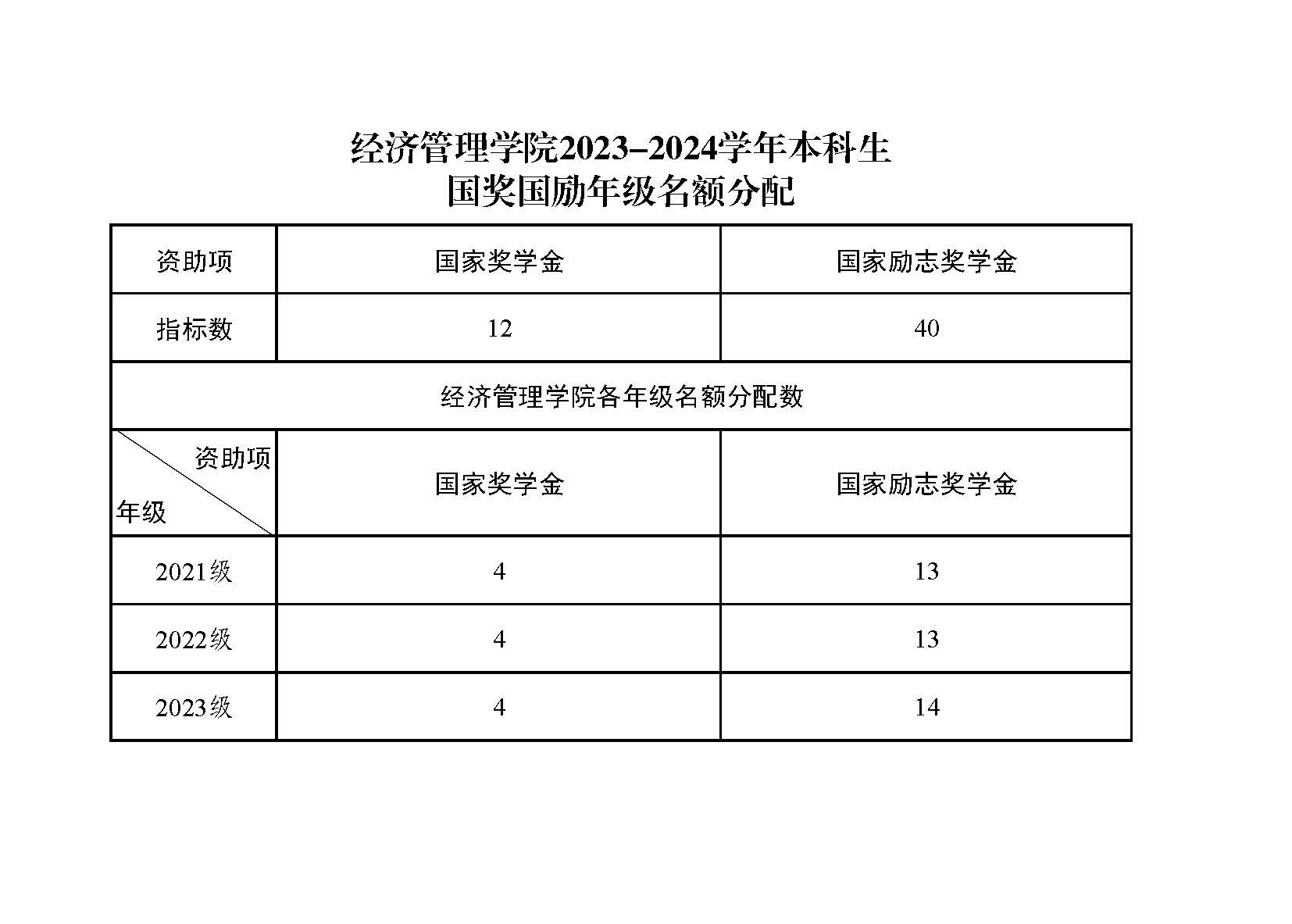 根据《今年会jinnianhui本科生奖助学金评审管理办法》(西交校学生〔2023〕4号)、《今年会jinnianhui本科生国家奖助学金评审管理办法》(西交校学生〔2020〕1号)及学校划拨名额,结合今年会官网本科二年级至四年级各年级人数比例,本着公平、公正、公开的原则分配名额,具体名额见下。