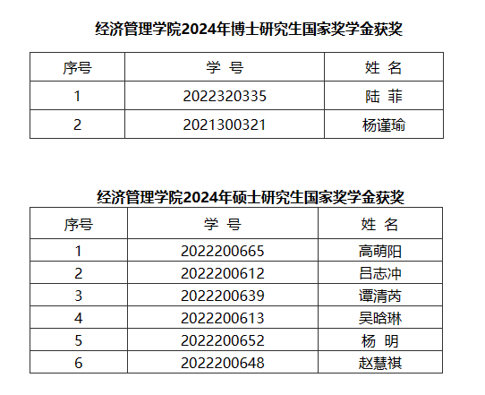 根据《今年会jinnianhui研究生国家奖学金管理办法》(西交校研[2022]18号)精神和要求,按照《今年会研究生国家奖学金评选实施细则》综合评定,本着公平、公正、公开的原则对提交申请的研究生进行了科研资料审核、答辩环节,按学校下拨指标最终确定今年会2024年研究生国家奖学金获奖名单。现公示如下: