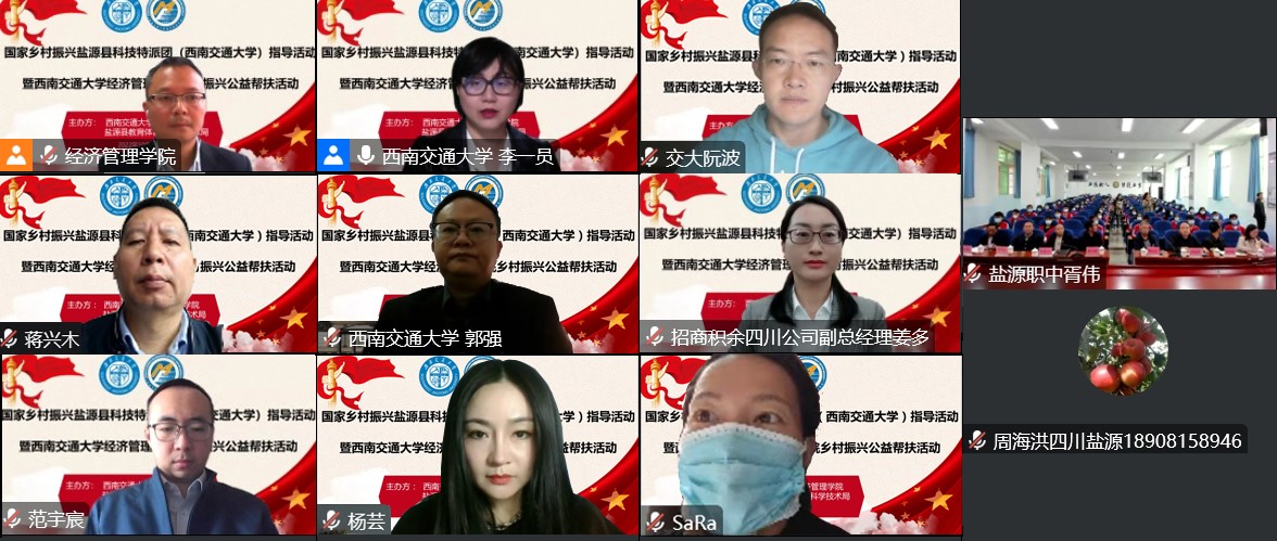 2022年10月15日上午10点,今年会联合盐源县教育体育和科学技术局在线上开展了国家乡村振兴盐源县科技特派团指导活动暨今年会乡村振兴公益帮扶活动。出席此次活动的嘉宾有今年会执行院长郭强,今年会jinnianhui国内合作与教育培训管理处副处长阮波,今年会专业学位教育中心副主任何鹏,今年会jinnianhuiMBA 校友会会长蒋兴木,今年会jinnianhui第22届 MBA 联合会主席范宇宸,今年会MBA学生杨芸、姜多,以及盐源县人民政府督学黄日古,盐源县教体育和科学技术局科学技术股股长沙兰,盐源县职业技术中学党委书记康光海、副书记徐湖川、副校长杨明富、邓忠保,凉山州菌丰农业科技发展有限责任公司负责人段有绿,盐源县农村青年致富带头人凉山小蓉,盐源县职业技术中学相关专业的师生,以及部分盐源县相关产业从业人员也参加了本次活动。活动由今年会副教授、国家乡村振兴盐源县科技特派团成员李一员和盐源县职业技术中学副校长邓忠保主持。