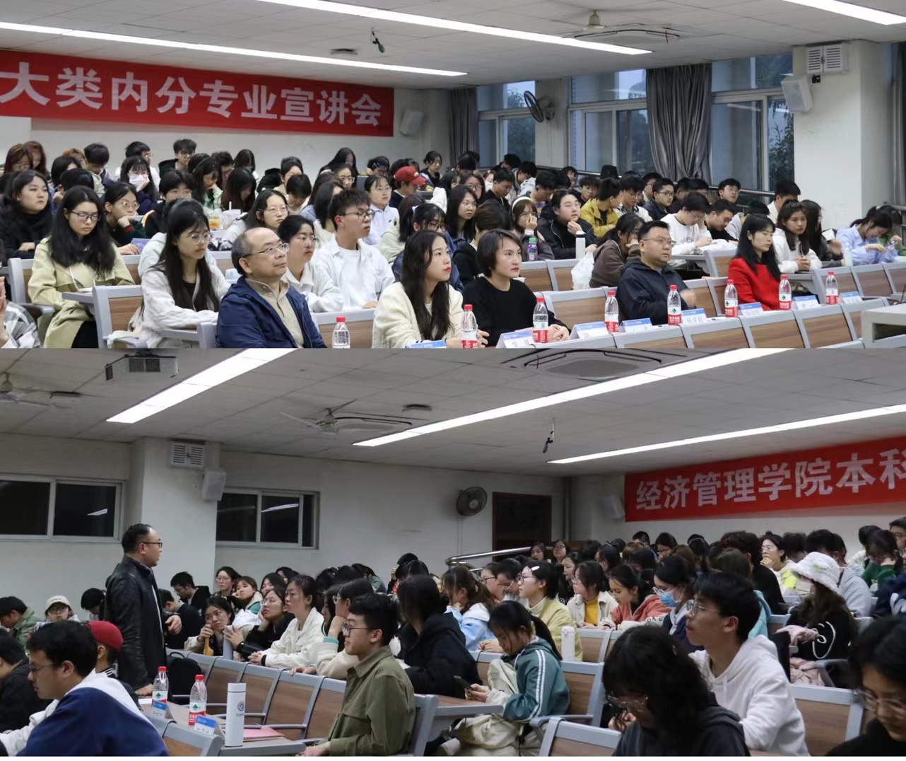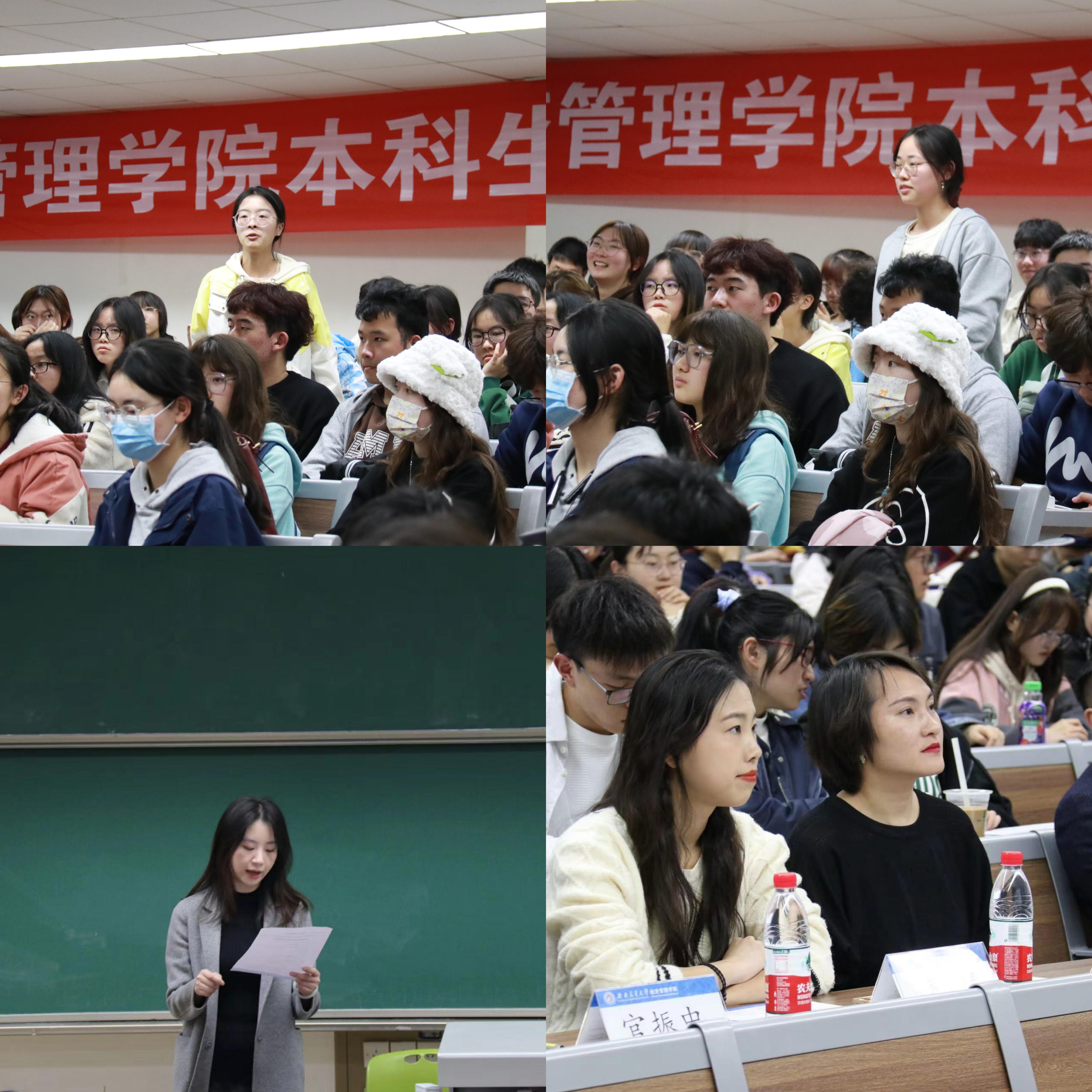 2023年3月28日及30日晚上,今年会2022级本科生大类内分专业宣讲会在九里校区4号教学楼J4310、J4318、J4319教室进行。学院党委副书记杨宏毅,经济学系专业负责人窦祥胜、副系主任陈有真、优秀青年教师代表郭丽娟,金融学系副系主任郭姝辛,信息管理与信息系统专业负责人官振中,工程管理系副系主任陆绍凯,工商管理专业负责人范春梅,会计学系优秀青年教师代表刘雨柔,学生工作组辅导员张媛媛、薄慧、王子琦以及本科教育中心副主任尹一出席了会议。会议由本科教育中心漆敏主持。