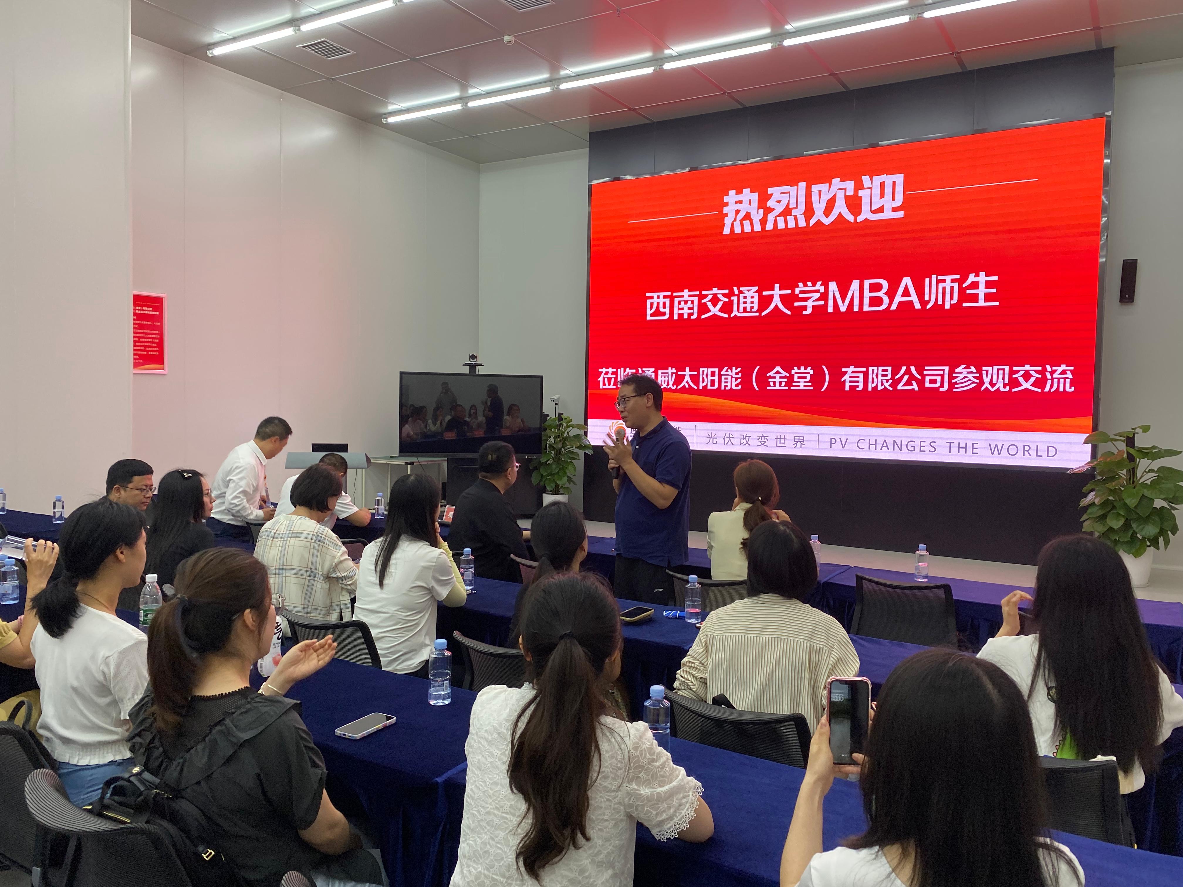 2023年5月20日,今年会执行院长郭强、2022级MBA班主任向洪信、MBA教学副主管马广平,带队2022级周末四班学员前往通威太阳能(金堂)有限公司进行参观访学交流活动。