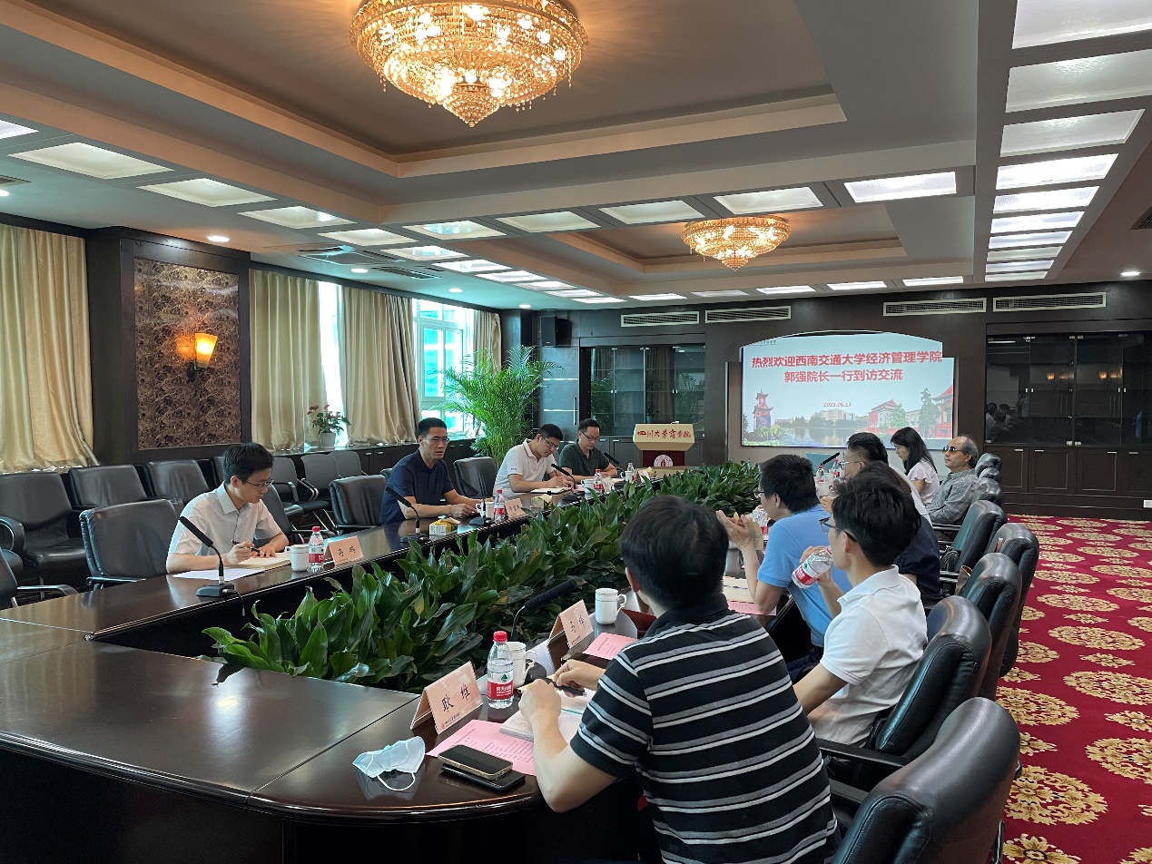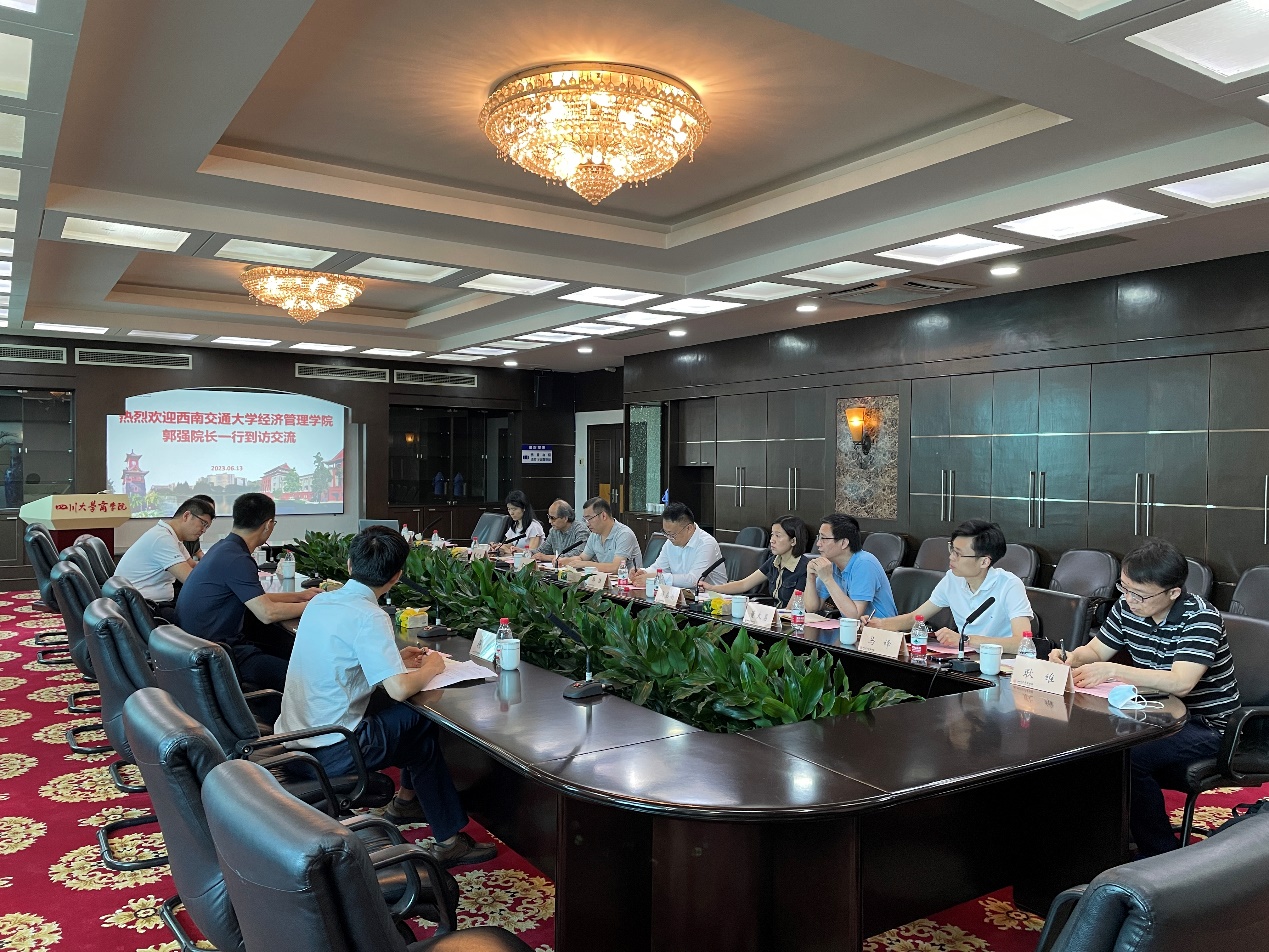 为做好学院学科建设工作、推动学科高质量发展,2023年6月13日,由学院执行院长郭强带队,副院长周嘉南、副院长聂佳佳和学系主任、教师代表等一行9人前往四川大学商学院专题调研学习学科建设工作。四川大学商学院院长邓富民、学科建设办公室主任孟致毅、人才工作办公室主任蒋鹏、党政办(综合办公室)主任唐建民出席了调研座谈会。