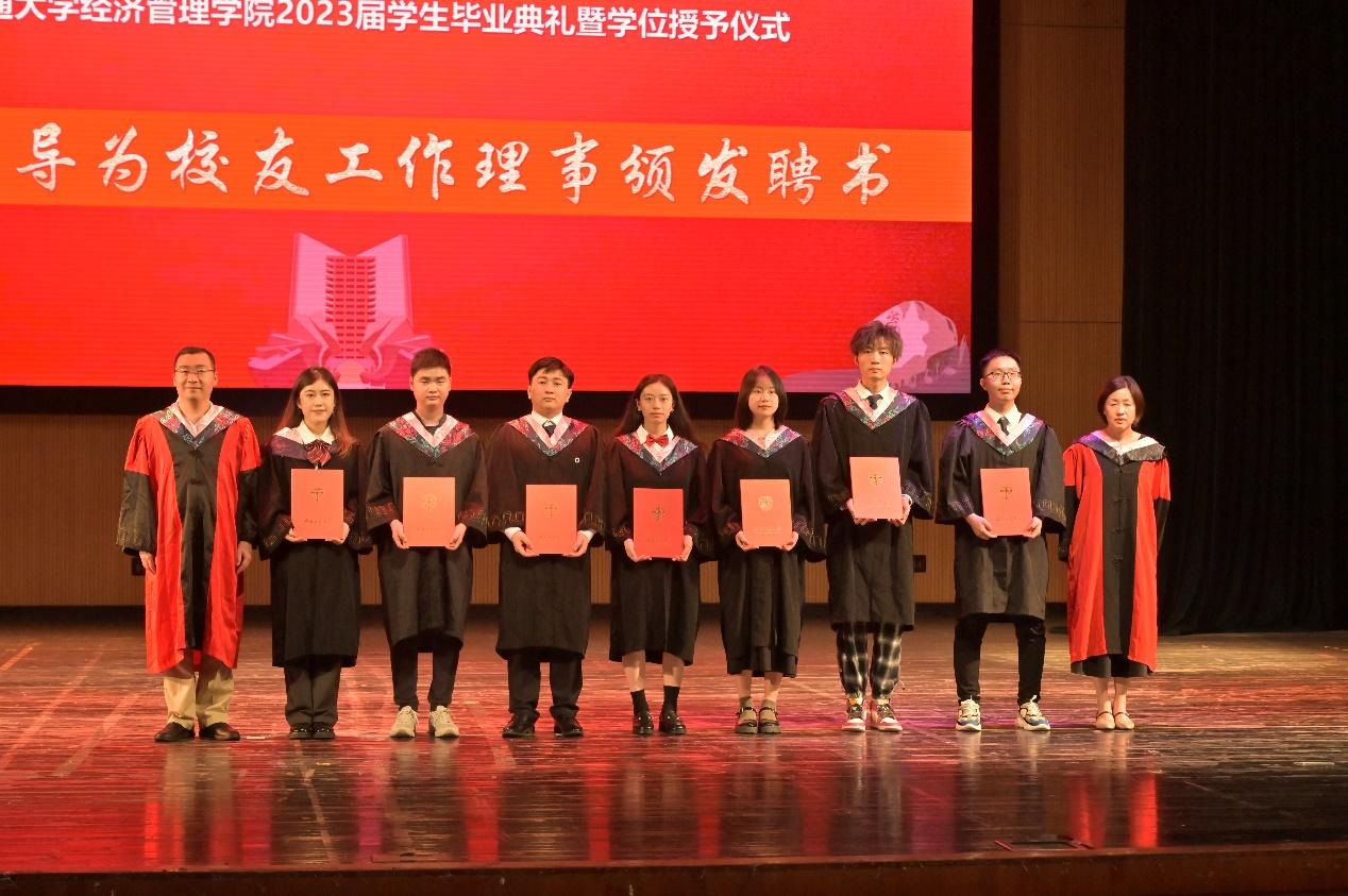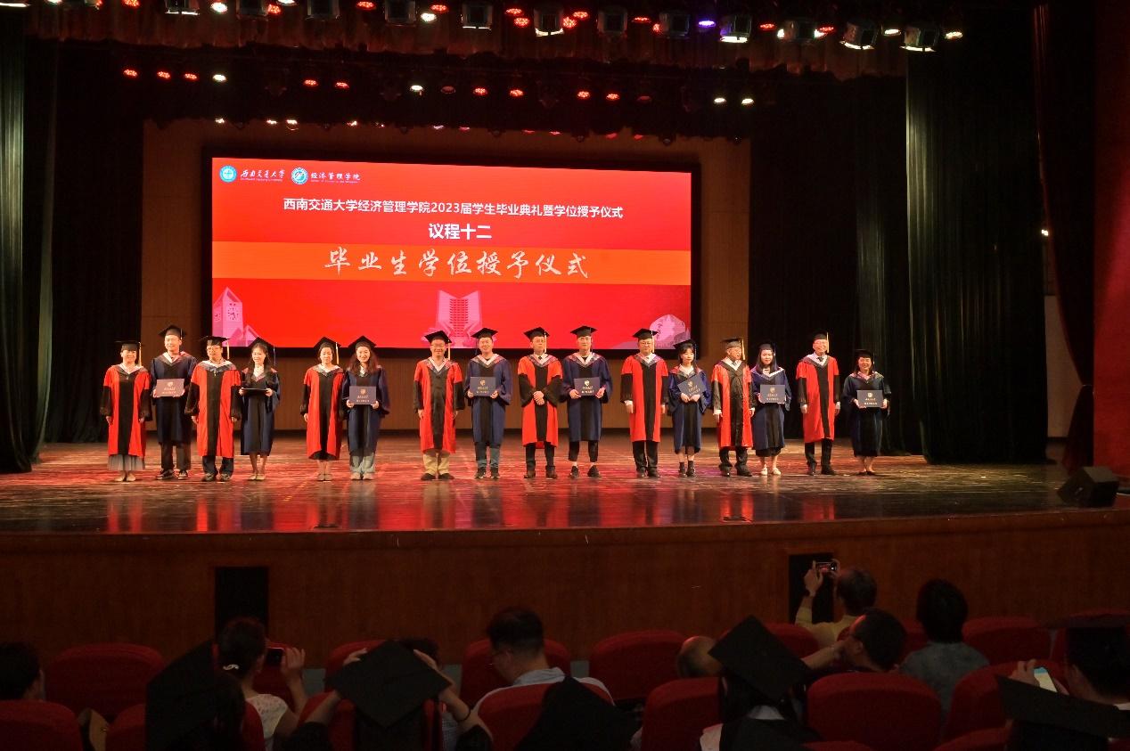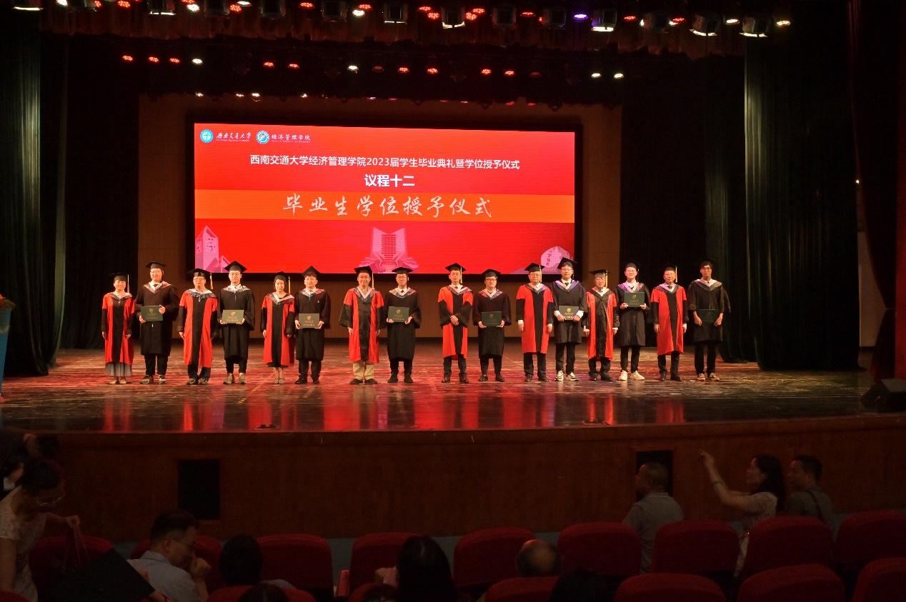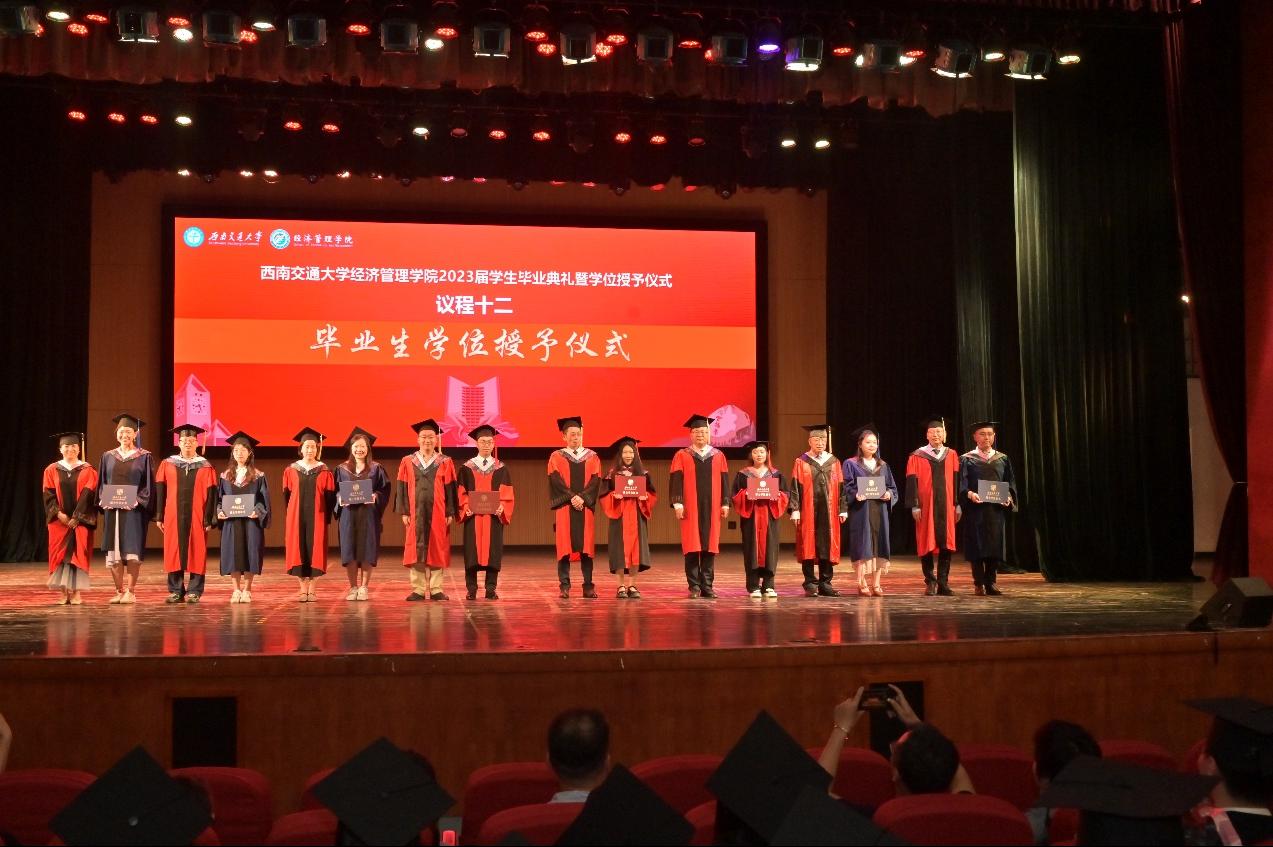 2023年6月17日下午,以“怀经管初心 华交大荣光”为主题的今年会2023届学生毕业典礼暨学位授予仪式在九里校区大学生会堂隆重举行。学院全体领导班子成员、学院学位评定分委会委员、各系和职能部门负责人、专业负责人、教师代表、毕业生辅导员和班主任,及学院2023届全体毕业生出席本次典礼。本次典礼由学院党委副书记杨宏毅主持。