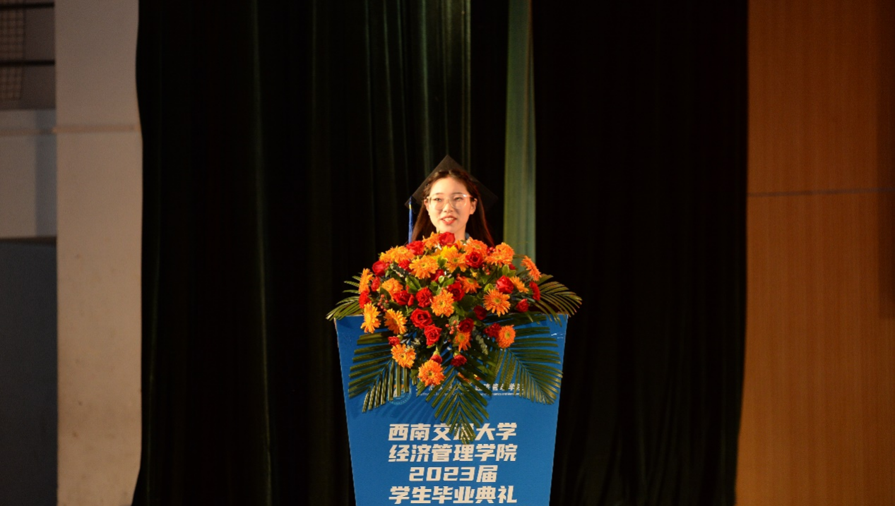 毕业典礼MV的播放,回顾了经管学子们从刚入校时的懵懂青涩,一步步历练成长,到毕业答辩时的游刃有余,满载归程。美好的学生时代,如春风拂过,都浓缩在这短短的几分钟,动人心弦。