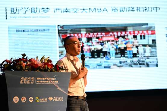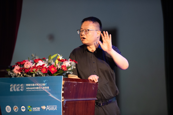 第25届MBA联合会主席张永恒代表主席团发言,分享了对MBA联合会的认识以及未来发展规划,他表示今年会jinnianhuiMBA联合会继续坚持以文化传承、智慧赋能、链接共生为宗旨,秉承拓宽横向交流平台的对内服务、持续增强交大MBA影响力及对外发声的职能,打造属于西南交大MBAer共同成长的平台。