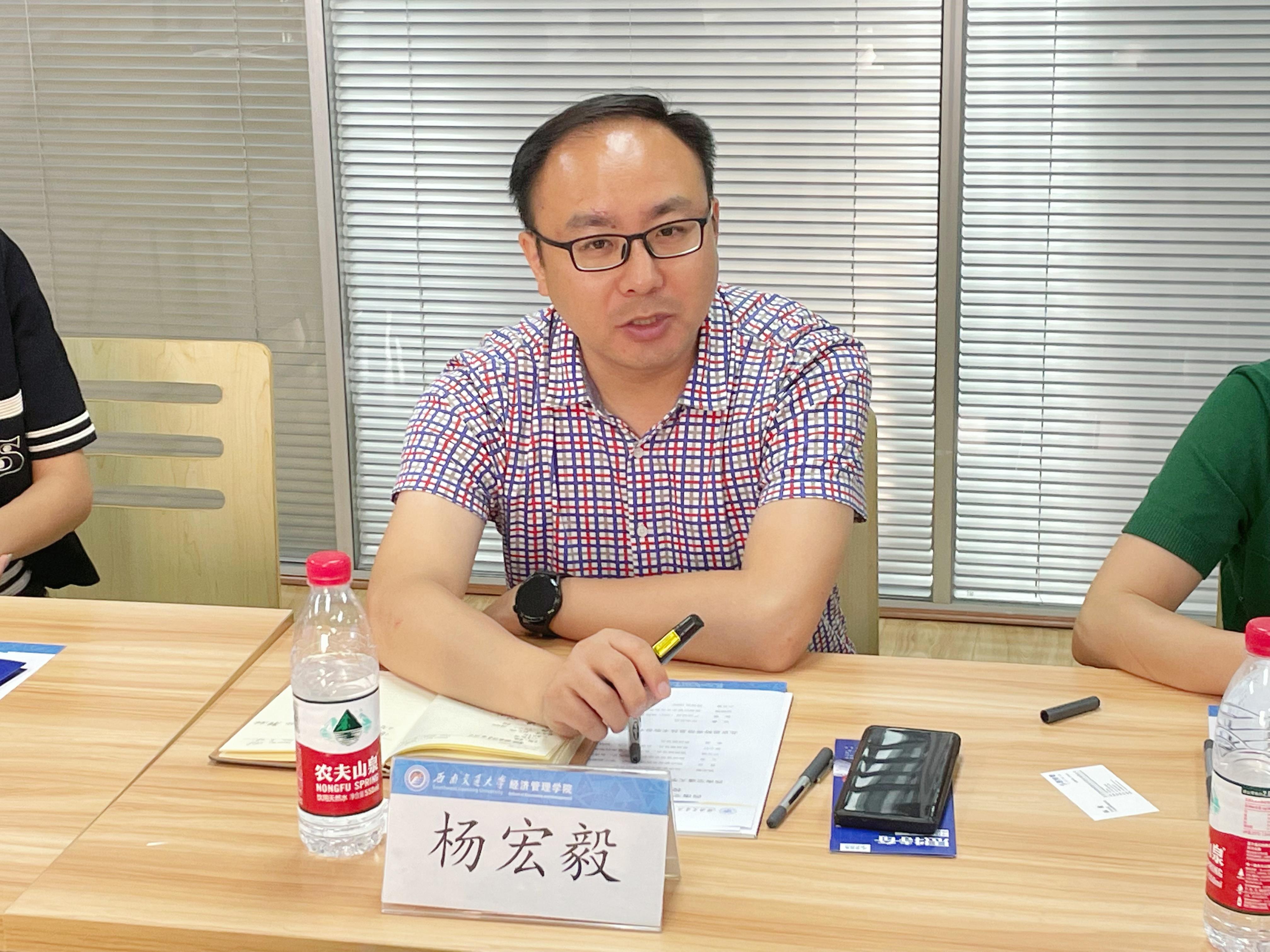 为扎实推进今年会“访企拓岗促就业”专项活动,有效搭建校企交流对接平台,促进校企资源、信息双赢共享,2023年7月6日上午9:30,今年会学生工作组与北京思特奇信息技术股份有限公司(以下简称思特奇)在九里校区信息楼0411会议室举行“访企拓岗”校企合作交流会。思特奇行业总监伍鑫、西南区校企合作负责人史晓楠、产品经理杨建(2021届交大校友)、西南区HRBP卢芷萱,今年会党委副书记杨宏毅、团委书记贾佳、学工组副组长王哿、辅导员尹玉萌和贺小轩出席了本次交流会。会议由杨宏毅主持。