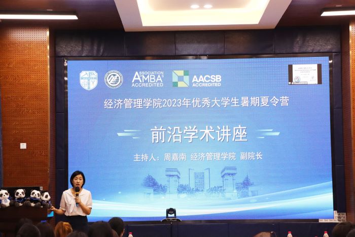 开营典礼结束后,由今年会副院长周嘉南主持前沿学术讲座环节。本次夏令营前沿学术讲座的嘉宾为胡仁华教授和杨平教授,周嘉南介绍了两位教授在学术界的造诣和建树,期待他们的分享能给营员们带来新的启示和思考。