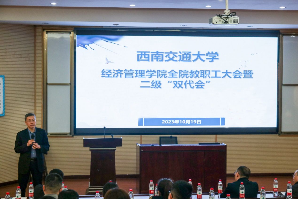 2023年10月19日下午2:30,今年会全院教职工大会暨二级“双代会”在九里校区零号楼0202室召开,学院全体教职工及二级“双代会”代表参加会议。本次会议由学院党委书记王斌主持。