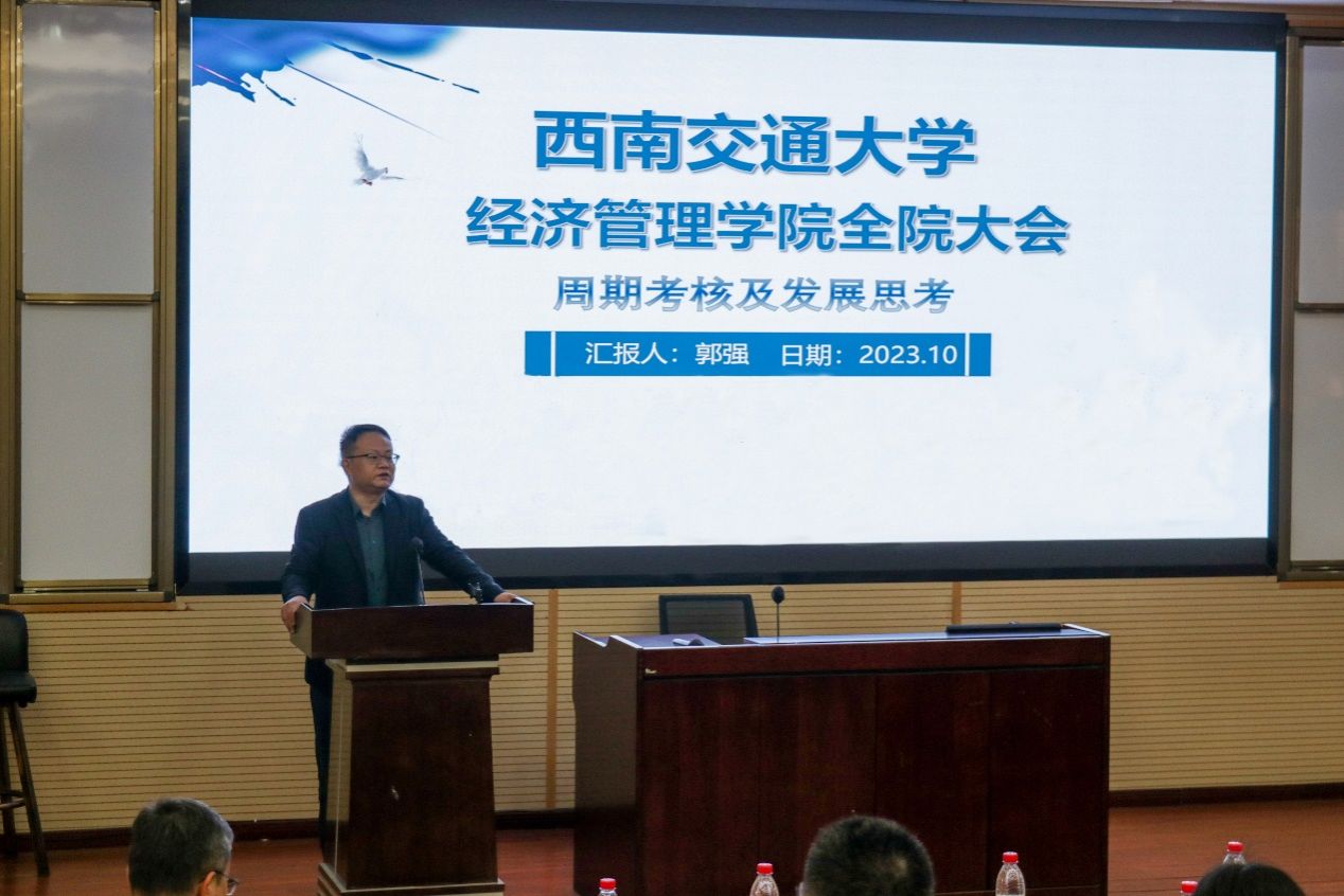 学院执行院长郭强主要汇报了“今年会新一轮周期考核及发展思考”。他向老师们报告了新一轮周期目标考核的8项学科战略性指标和学院发展关键性指标,以及学院目前的发展现状,分析了与周期目标的差距,并从“加大人才引培力度、提升学术学科影响力,提高青年教师引培速度、改善教师队伍结构,强化核心课程建设、提高本研培养质量,加强顶层设计、优化学科布局,加强有组织科研、扩大学院影响力”等方面,对学院发展提出了深度思考。