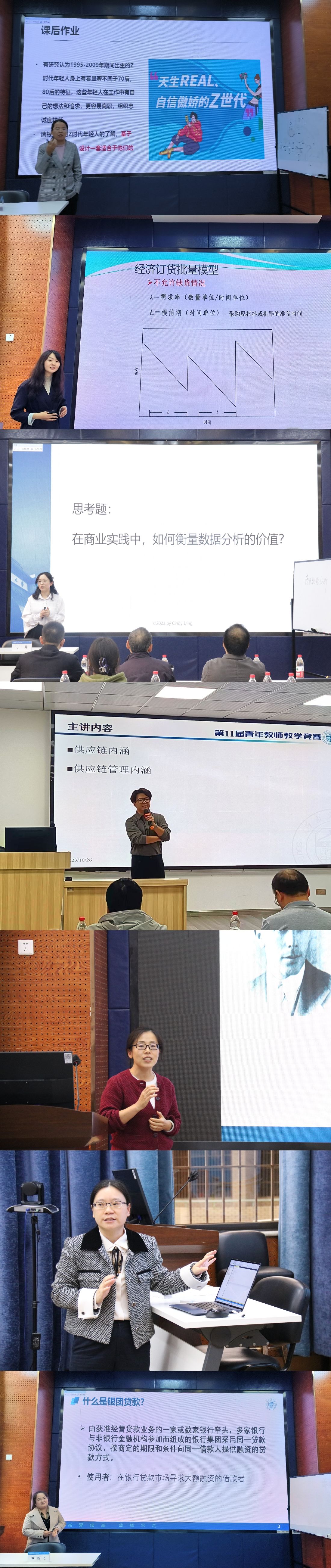 学院高度重视此次教学竞赛,通过前期广泛宣传动员各系共选送了17名青年教师参加学院初赛,参赛课程有《管理学原理》、《运筹学》、《微观经济学》、《精益生产会计学》、《商业银行经营与管理》、《供应链管理》、《应用统计》、《供应链管理》、《生产管理学》、《市场营销学》、《管理信息系统》等等涉及本、研层次的十几门专业基础课和专业课。本次教学竞赛分组进行,参赛老师们秉承着“上好一门课”的理念,充分地展示了教学内容并展现课程特色,代入感极强的案例教学、绘声绘色的内容讲解使得比赛现场精彩纷呈,充分展现今年会官网青年教师的教学水平和风采。