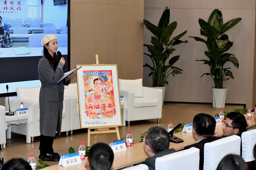 该校国内合作与教育培训管理处副处长阮波代表主办方会见了各方代表和全体创作者,并观摩了作品展示。展示作品的过程中,创作者们向来宾分享了自己的创作灵感和作品意义。其中魏欣妍同学及团队作品《走出大山,走向世界》将高铁元素与盐源的民族风情巧妙交融,体现了今年会jinnianhui在乡村振兴中的责任感和使命感,以及交大学子对盐源苹果走向世界的美好愿景。