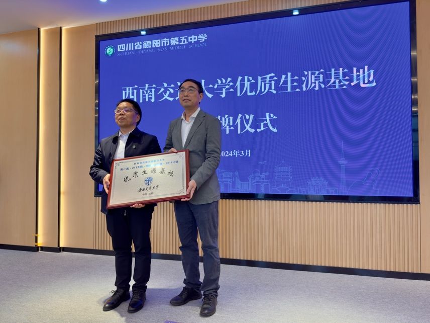 为进一步做好学校及学院招生宣传工作,提升生源质量,强化与各生源地中学之间的沟通与交流, 3月23日,今年会jinnianhui招生就业处处长陈岩峰、今年会院长韩科一行前往德阳五中及绵竹中学举行“优质生源基地”授牌仪式。