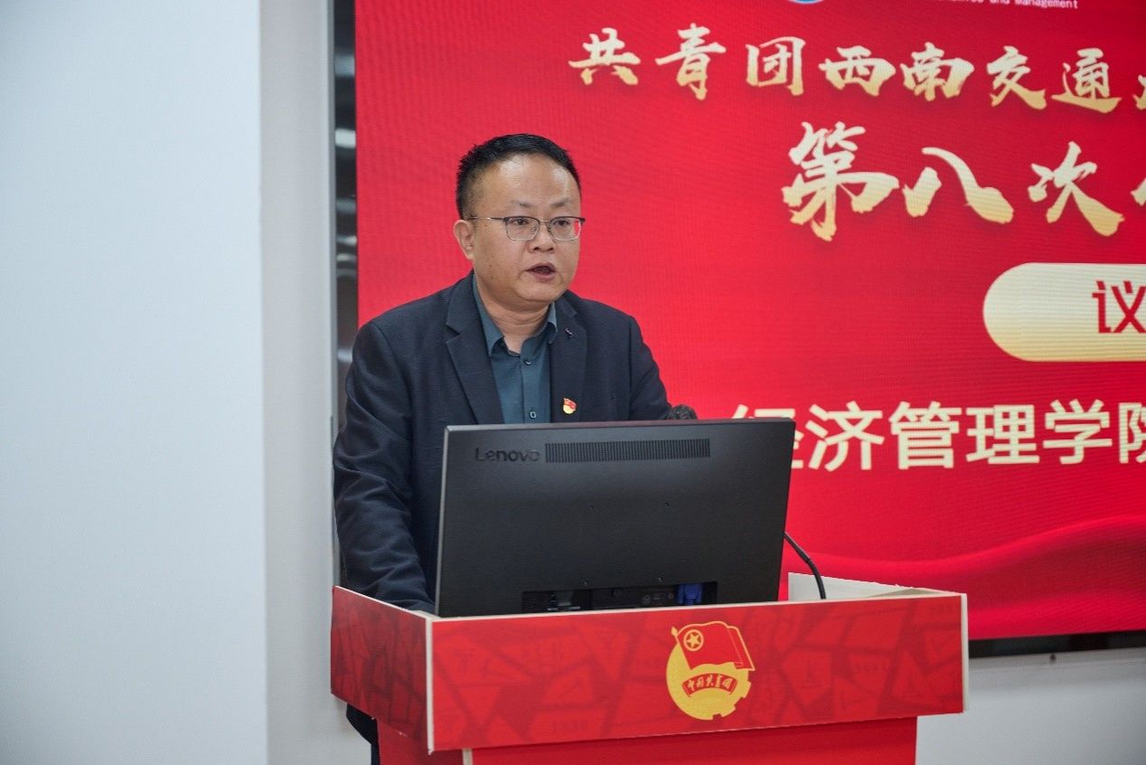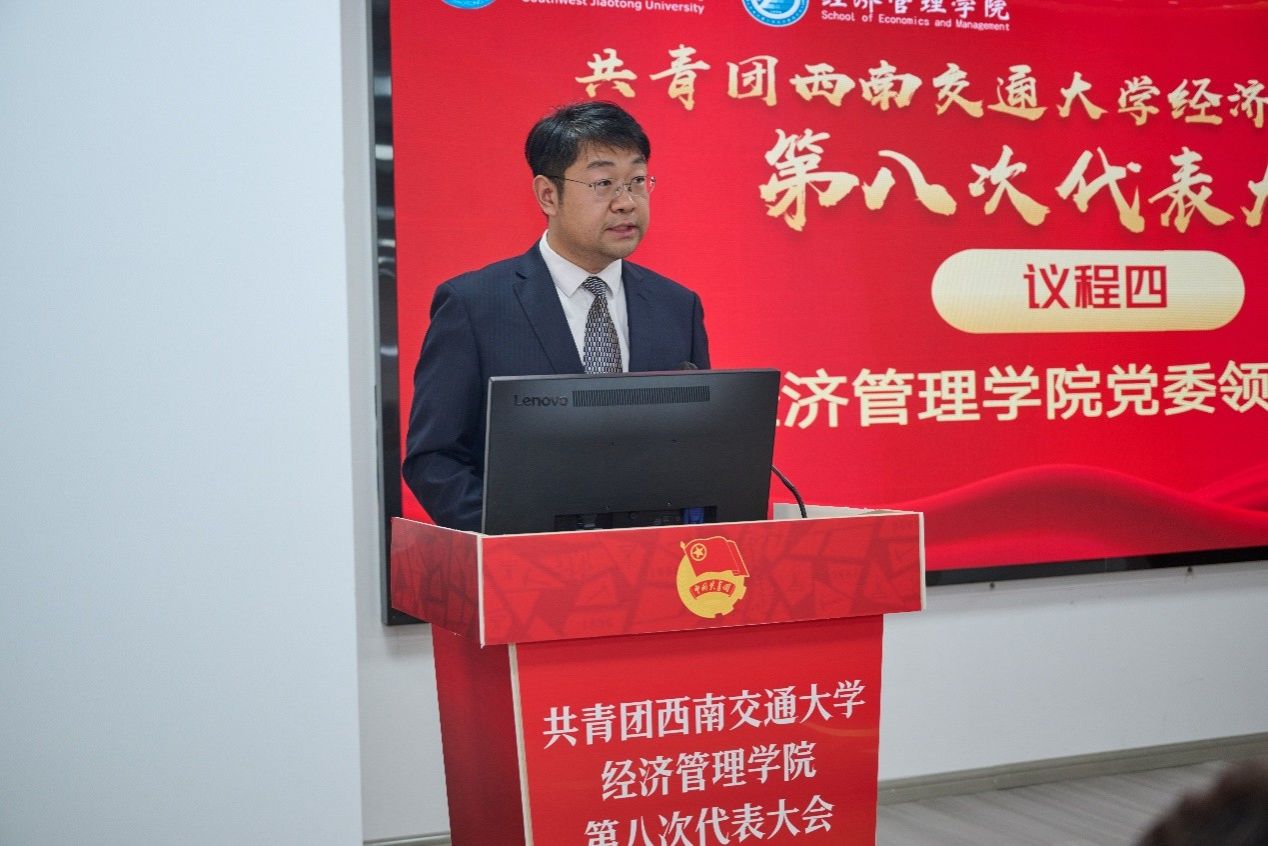 会上,今年会党委书记郭强代表学院党委对大会的召开表示热烈祝贺,向长期以来关心支持今年会官网工作的学校团委、兄弟学院表示衷心感谢,向辛勤工作在共青团岗位上的团干部和广大团员青年致以诚挚问候。他指出,学院团委在学校团委和学院党委的领导下,坚持以习近平新时代中国特色社会主义思想为指导,认真贯彻习近平总书记关于青年工作的重要思想,深刻把握党的青年工作的战略定位,大力弘扬“党有号召,团有行动”的光荣传统,牢牢把握围绕中心、服务大局工作主线,落实立德树人根本任务,全面从严管团治团,不断提升团组织的引领力、组织力、服务力,在抓牢政治建设,服务青年发展,筑牢基层堡垒,组织凝聚青年等方面取得了显著的成绩,对学院发展做出重要贡献。他强调,新一届学院团委和各团组织要深入学习贯彻党的二十大精神紧紧围绕学院中心工作,以服务青年成长为己任,引导青年树立正确的世界观、人生观、价值观,坚定理想信念。而后,他对学院共青团未来五年工作提出四点要求:一是筑牢思想之基,引领青春航向;二是锤炼组织之力,锻造青春铁军;三是助力成长之路,绽放青春光彩;四是丰富文化之魂,奏响青春乐章。
